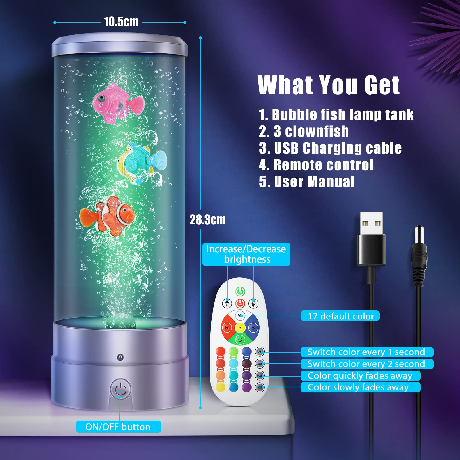 VEVOR Lavalampe 151cm Mit 10 Fischen - 16 Farben, Fernbedienung