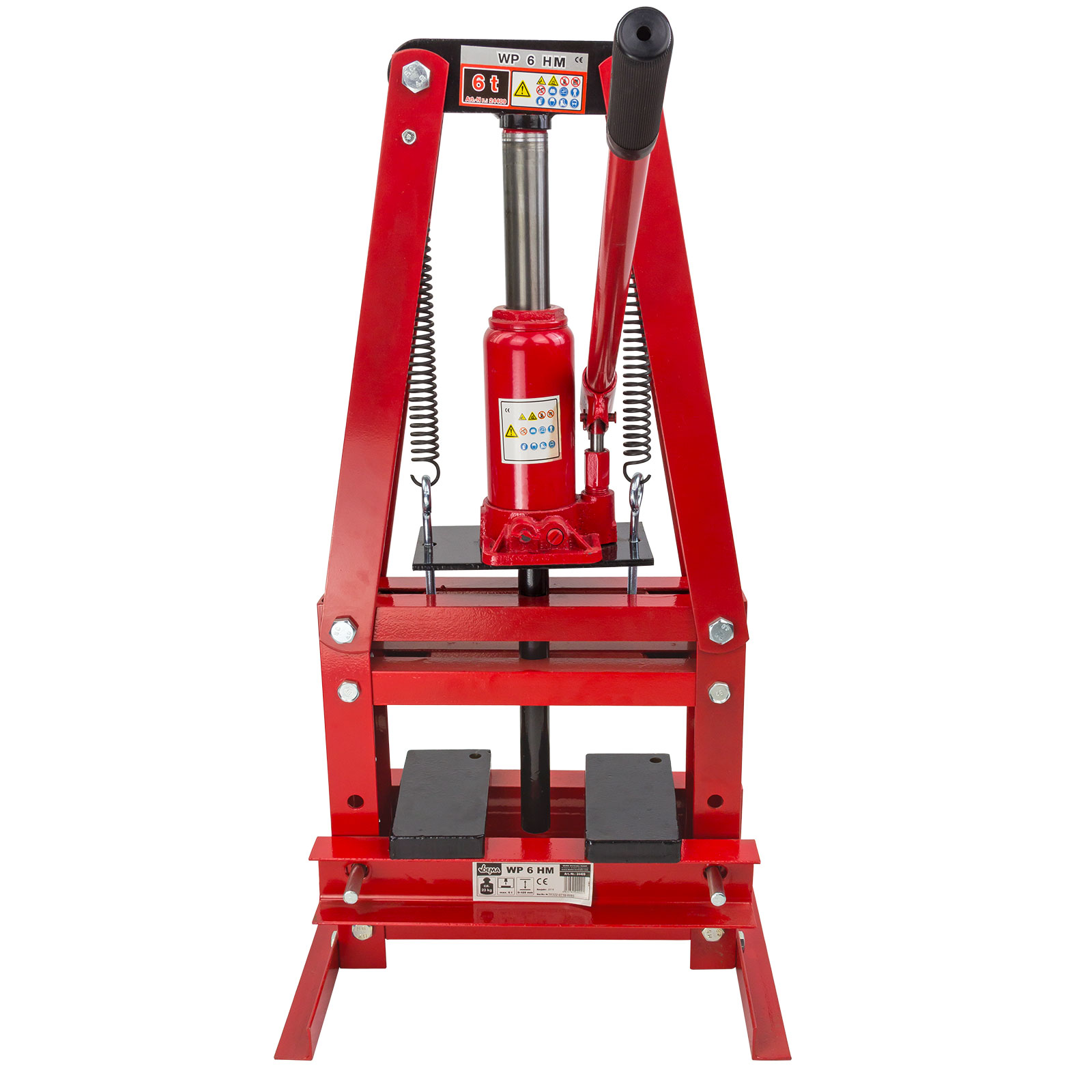 Diese robuste 6-Tonnen-Hydraulikpresse ist der starke Helfer für jede Werkstatt! Mit 125mm Hub und variablem Arbeitsabstand bis 28cm meistert sie die unterschiedlichsten Aufgaben. Das 4-stufige Höhenverstellungssystem ermöglicht perfekte Anpassung an verschiedene Arbeitsstücke. Aus hochwertigem Kohlenstoffstahl gefertigt, hält sie auch intensivem Gebrauch stand. Perfekt für das Auspressen von Lagern, Buchsen, Gelenken oder zum Biegen von Metall. Der gummiummantelte Griff liegt angenehm in der Hand und reduziert Ermüdung. Einfach zu montieren - alles Notwendige ist im Lieferumfang enthalten. Mit den Maßen 50x40x90cm findet sie in jeder Werkstatt Platz. Die rote Lackierung sieht nicht nur gut aus, sondern schützt auch vor Rost. Absolute Profiqualität für Heimwerker und Profis!