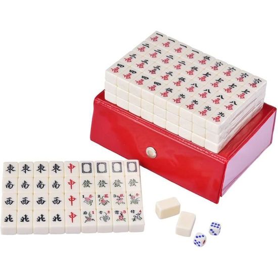 Mini-Mahjong Set Mit 144 Karten - Traditionelles Chinesisches Reisespiel | Inkl. 2 Würfel & 4 Kartenlineale