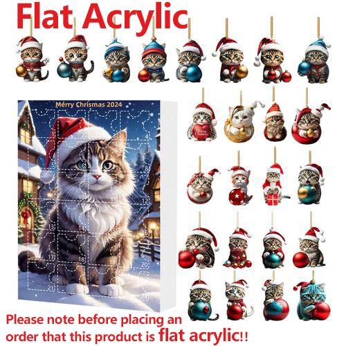 Katzen Adventskalender 2025 Mit 24 Acryl Anhängern - Weihnachts Countdown Deko