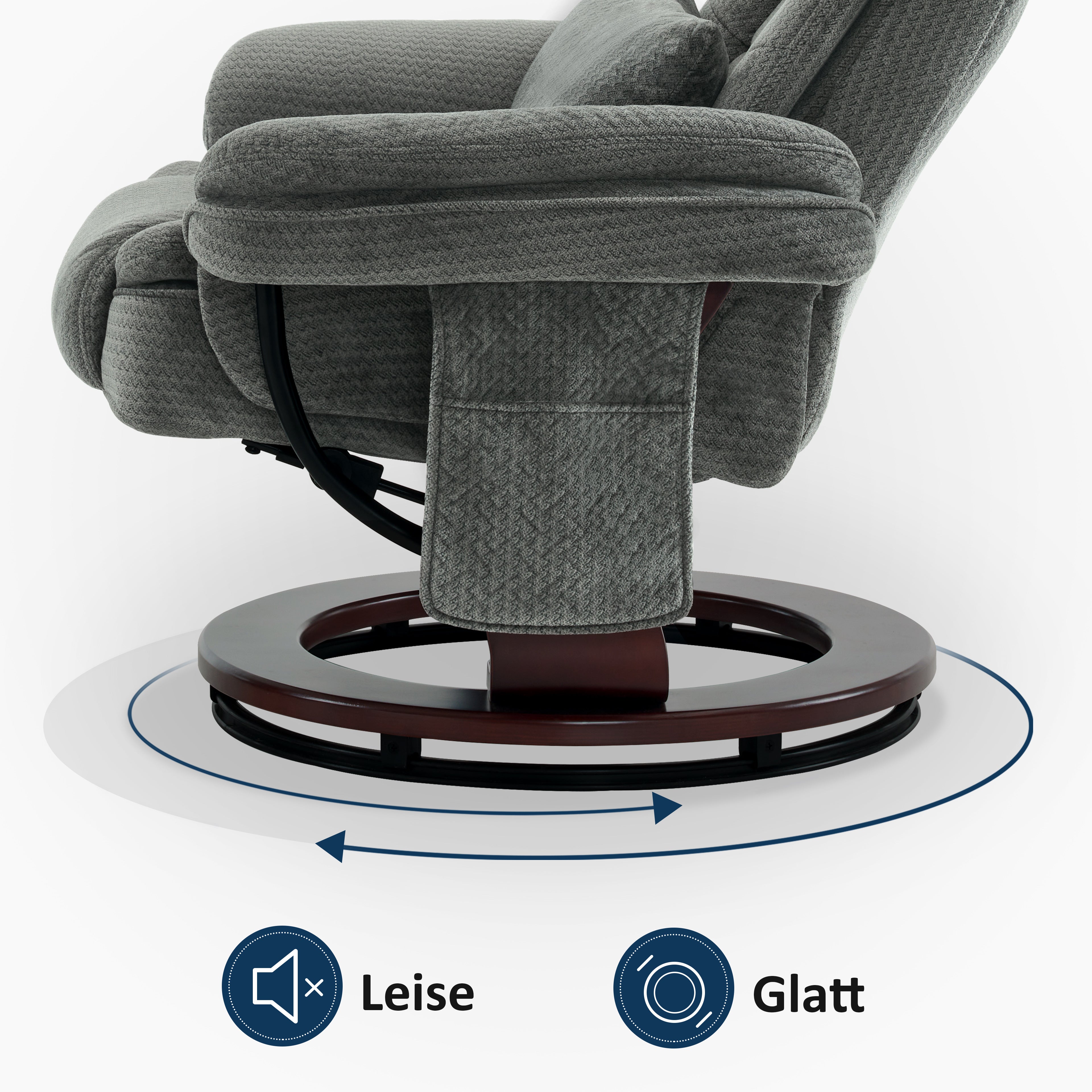 Egal ob du Filme schaust, liest oder einfach nur entspannen willst - dieser Sessel wird dein neuer Lieblingsplatz! Mit dem geräuschlosem Drehteller kannst du dich lautlos drehen und den Raum im Blick behalten. Einfach genial, oder?