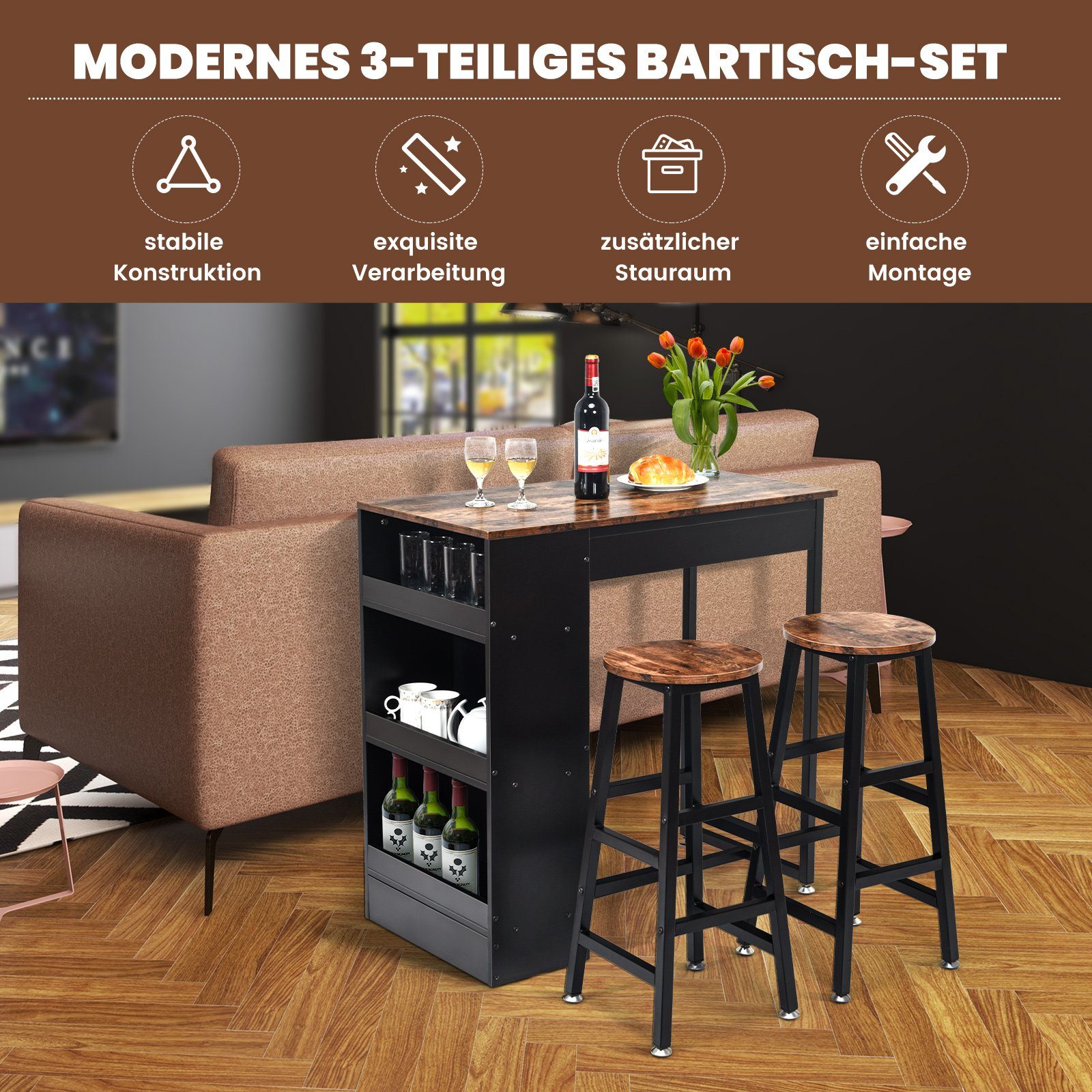 COSTWAY Bartisch Set 150cm Mit 3 Hockern & Steckdosen - Landhaus Stil