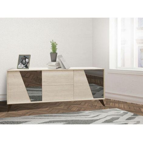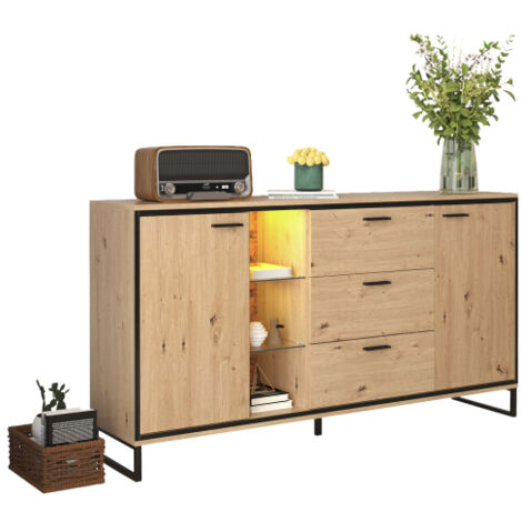 Das absolute Highlight: 15 farbwechselnde LED-Lichtstreifen an der Rückwand! Sie erzeugen wunderschöne Licht- und Schatteneffekte und setzen deine Deko perfekt in Szene. Aus stabiler Spanplatte gefertigt, hält das Sideboard was es verspricht.