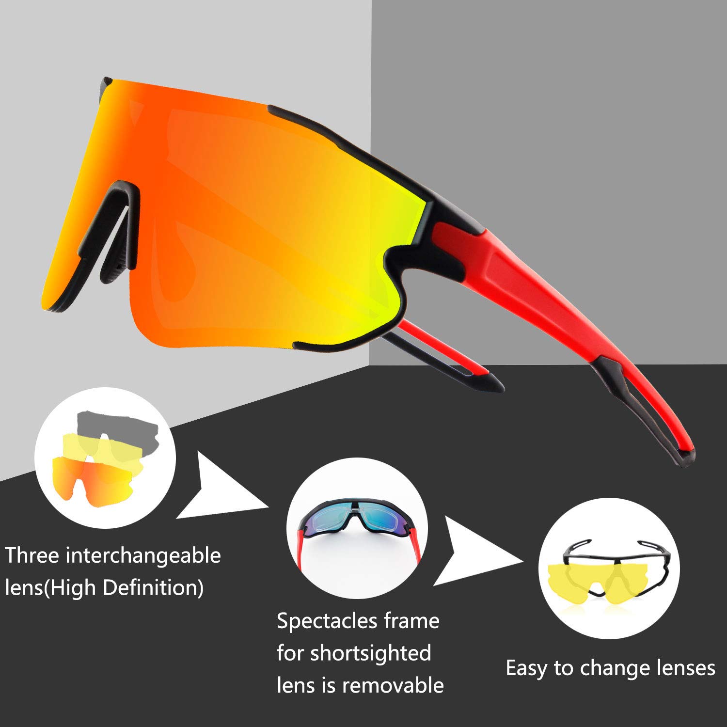 Sportbrille Polarisiert Mit 3 Wechselgläsern - Fahrradbrille Für Herren & Damen TR90 UV400