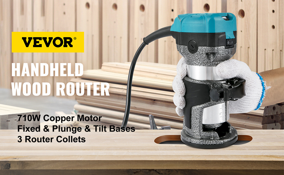 VEVOR Oberfräse 33000 U/min - Holzfräse Mit 4 Basen Und Zubehör Für Professionelle Holzbearbeitung