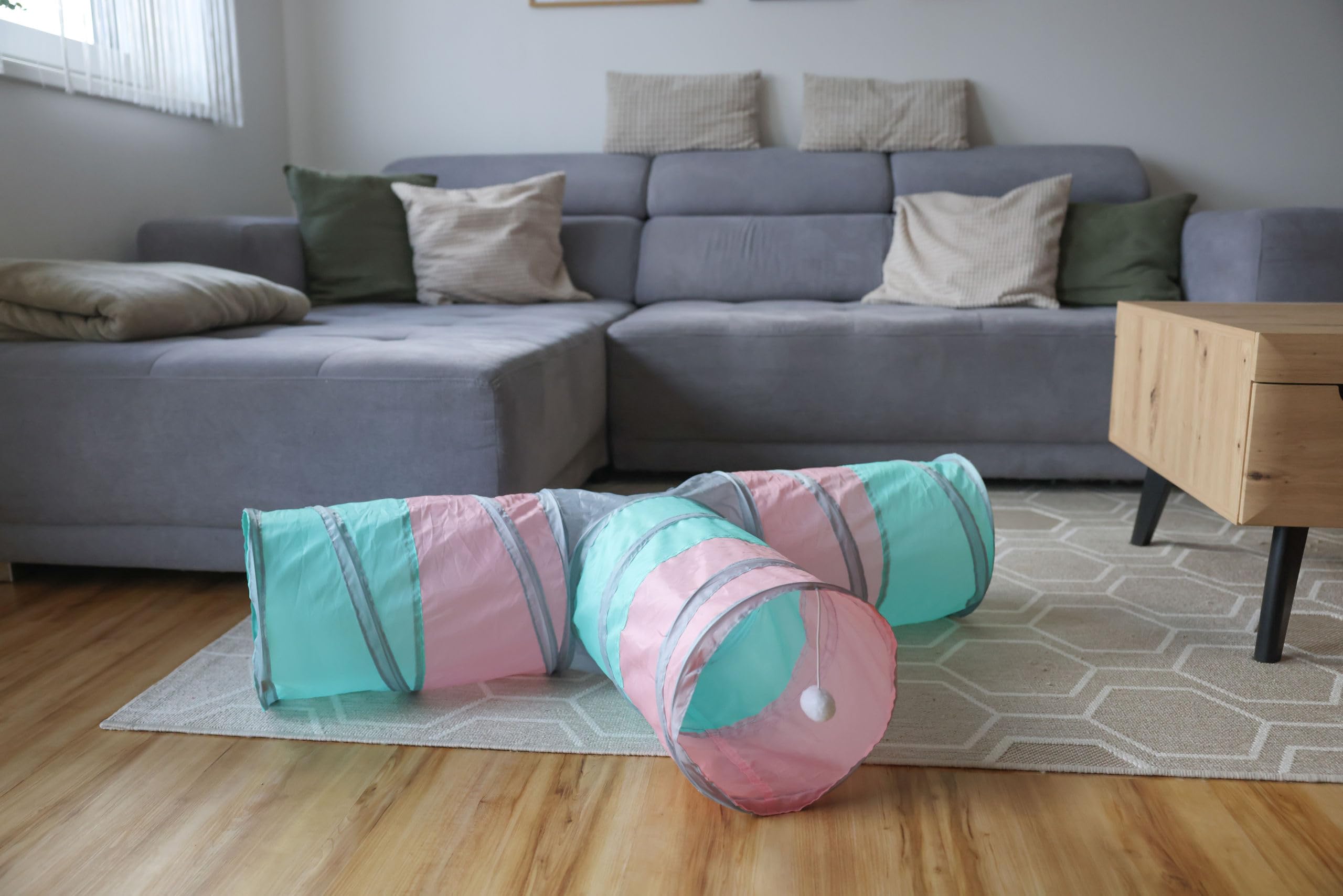 Deine Katze wird verrückt spielen! Der Kerbl Pet Katzentunnel in den fröhlichen Farben Türkis, Rosa und Grau ist das ultimative Spielvergnügen für Stubentiger. Mit 4 Eingängen und den Maßen 25x80x50cm bietet er jede Menge Action. Die eingearbeitete Spiralfeder sorgt für Formstabilität auch bei wildesten Spielattacken. Das raschelnde Material weckt den Jagdinstinkt deiner Katze und animiert zum Verstecken und Jagen. Besonders praktisch: Der Tunnel lässt sich platzsparend zusammenklappen und überallhin mitnehmen. Aus recyclingfreundlichen Materialien hergestellt - gut für deine Katze und die Umwelt. Ein Muss für jede verspielte Katze!