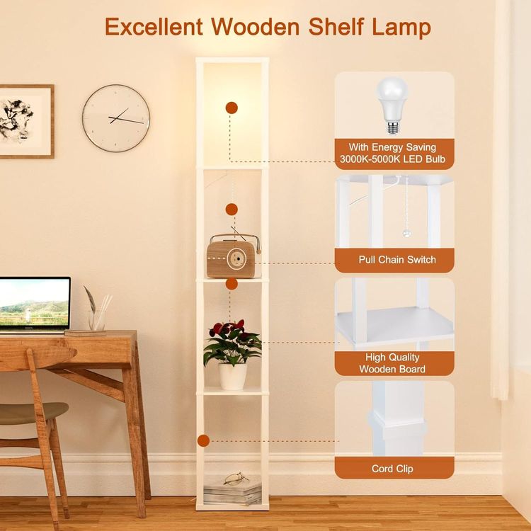 GOEBLESON Stehlampe Mit 4 Regalen - Dimmbare LED Leuchte 20W 360° Drehbar