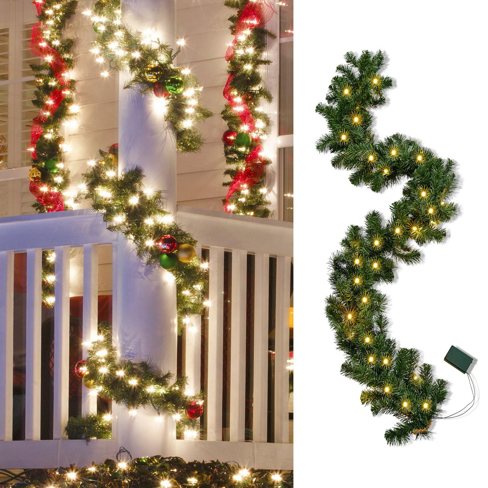Mega Weihnachtsstimmung garantiert! Diese riesige Tannengirlande ist ganze 540cm lang und hat 70 warmweiße LED-Lämpchen. Sieht täuschend echt aus - die Kunst-Tannenzweige sind super natürlich. Batteriebetrieben (2x AA, nicht dabei) - also kein Kabelsalat! Mit Timerfunktion geht sie automatisch an und aus. Für innen und außen geeignet - mach deine Wohnung, deinen Balkon oder Garten damit richtig weihnachtlich. Einfach auspacken, Batterien rein und aufhängen. Die Girlande ist leicht biegbar und passt sich super an. Perfekt für Weihnachtsmärkte, Gastronomie oder einfach für daheim. Holt euch den Weihnachtszauber nach Hause!