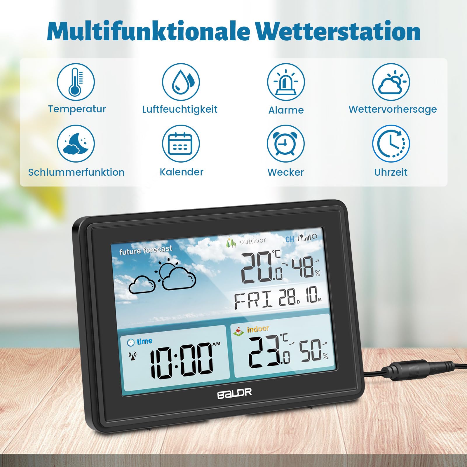 PlayDen Wetterstation Funk Mit Außensensor - Farbdisplay & DCF Funkuhr