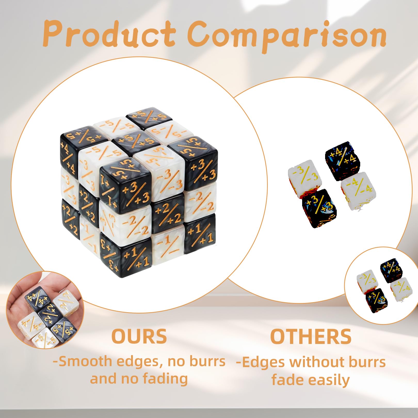 Spielspaß pur mit diesem 53-teiligen Würfel-Set! Perfekt für Magic The Gathering, MTG, TCG und alle anderen Brettspiele. Enthalten sind 40 Plus/Minus Würfel, 10 weiße Schlüsselwort-Würfel und 3 D20 Würfel - alles, was du für deine Spielrunden brauchst! Aus hochwertigem Acryl gefertigt, sind die Würfel robust und langlebig. Die klaren Zahlen und Symbole sind gut lesbar. Acht verschiedene Farben sorgen für Abwechslung und Übersicht während des Spiels. Die mitgelieferte Aufbewahrungstasche hält alle Würfel sicher zusammen - ideal für unterwegs zu Spieleabenden oder Turnieren. Mit diesen Würfeln behältst du leicht den Überblick über Lebenspunkte, Mana und andere Spielwerte. Ein unverzichtbares Zubehör für jeden begeisterten Spieler! Ob für Familientreffen, Partys oder regelmäßige Spielrunden - dieses Set macht jedes Spiel noch unterhaltsamer. Hol dir jetzt dieses umfangreiche Würfel-Set und verbessere dein Spielerlebnis!