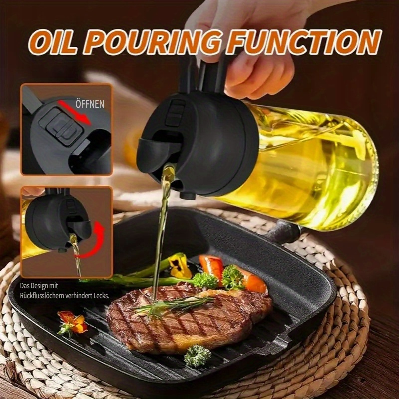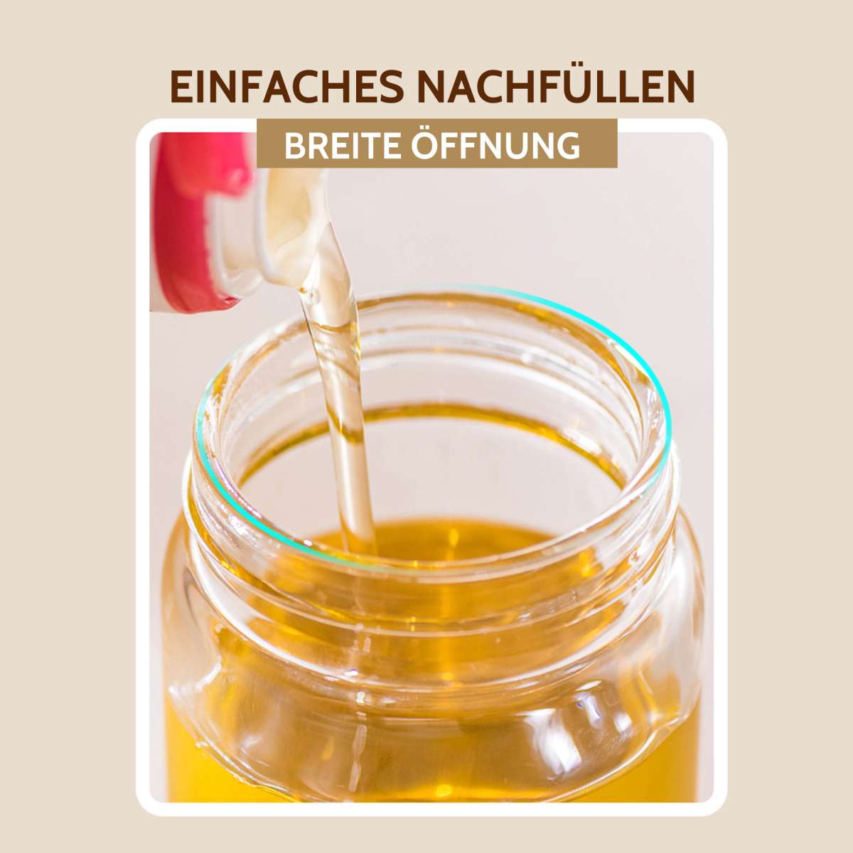 Wow, was für eine praktische Idee! Diese JOJYO Ölflasche mit integrierter Bürste macht Grillen, Kochen und Backen so much easier! Aus hochwertigem Borosilikatglas - hitzebeständig von -20°C bis 150°C (Deckel bis 400°C!). Die Bürste ist fest mit dem Deckel verbunden - geht nicht verloren und ist immer griffbereit. Mit Silikondichtung absolut dicht - kein Auslaufen in der Tasche! Der große Flaschenöffner macht das Reinigen zum Kinderspiel. FDA-konform und BPA-frei - also absolut unbedenklich für Lebensmittel. Perfekt für Öl, aber auch für Marinaden, Saucen oder Dressings. Ideal für zu Hause, Grillpartys, Cafés oder Buffets. Einfach befüllen, verschließen und mit der Bürste dein Grillgut perfekt einölen - so geht modernes Kochen!