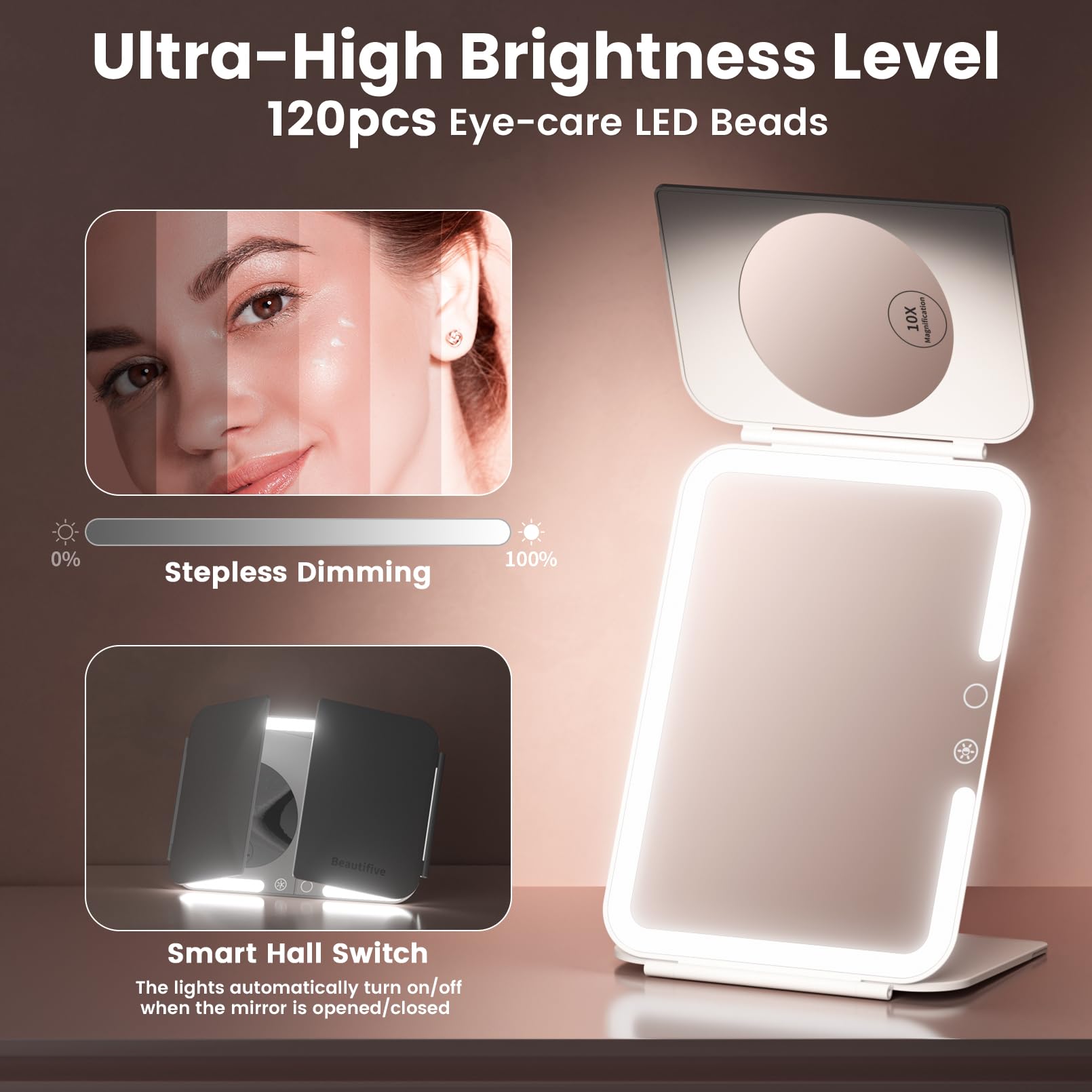 Mädels, dieser Spiegel ist der Hammer! Mit 10facher Vergrößerung siehst du wirklich JEDES Detail - perfekt für präzisen Eyeliner oder um lästige Mitesser zu entfernen. Der Vergrößerungsspiegel ist magnetisch, kannst du also einfach abnehmen. Drei Lichtfarben stehen zur Auswahl: Tageslicht fürs Büro, Warmlicht für romantische Abende und Kaltlicht für HD-Genauigkeit. Die Helligkeit regelst du einfach per Touch - mega modern! Und das Beste: Der Spiegel ist wiederaufladbar per USB-C, hält bis zu 5 Stunden. Klappbar und nur 2,18cm dick - passt in jede Handtasche für unterwegs. Aus stabilem ABS-Material, hält auch mal was aus. Ob im Bad, im Hotelzimmer oder in der WG - damit siehst du immer perfekt aus. Ein tolles Geschenk für Mama, Freundinnen oder einfach für dich selbst! Einfach auspacken, aufklappen und strahlen - mehr Beauty geht kaum!