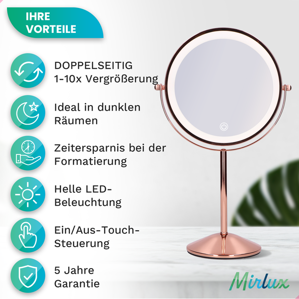 WEILY Kosmetikspiegel Mit Beleuchtung - 10x Vergrößerung & 3 Lichtfarben