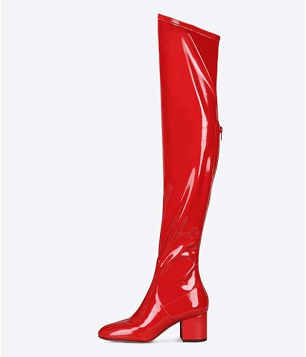 Wow-Faktor garantiert! Diese Damen Overknee Stiefel mit 8cm Blockabsatz sind der absolute Hingucker. Aus hochwertigem Synthetikmaterial in Lederoptik - sieht aus wie echt, ist aber viel pflegeleichter. Mit 58cm Schafthöhe und 40cm Schaftweite passen sie super. Die spitze Form ist total trendy und der Reißverschluss macht das Anziehen easy. Innen ist's gemütlich mit Textilfutter aus 100% Polyester. Für Herbst und Winter perfekt - zwar nicht gefüttert, aber mit Strumpfhosen oder dicken Socken trotzdem warm. Die 8cm Absätze sind noch gut begehbar und geben dir extra Höhe. Macht jede Figur einfach umwerfend! Perfekt für Parties, Dates oder wenn du einfach mal was Besonderes anziehen willst.