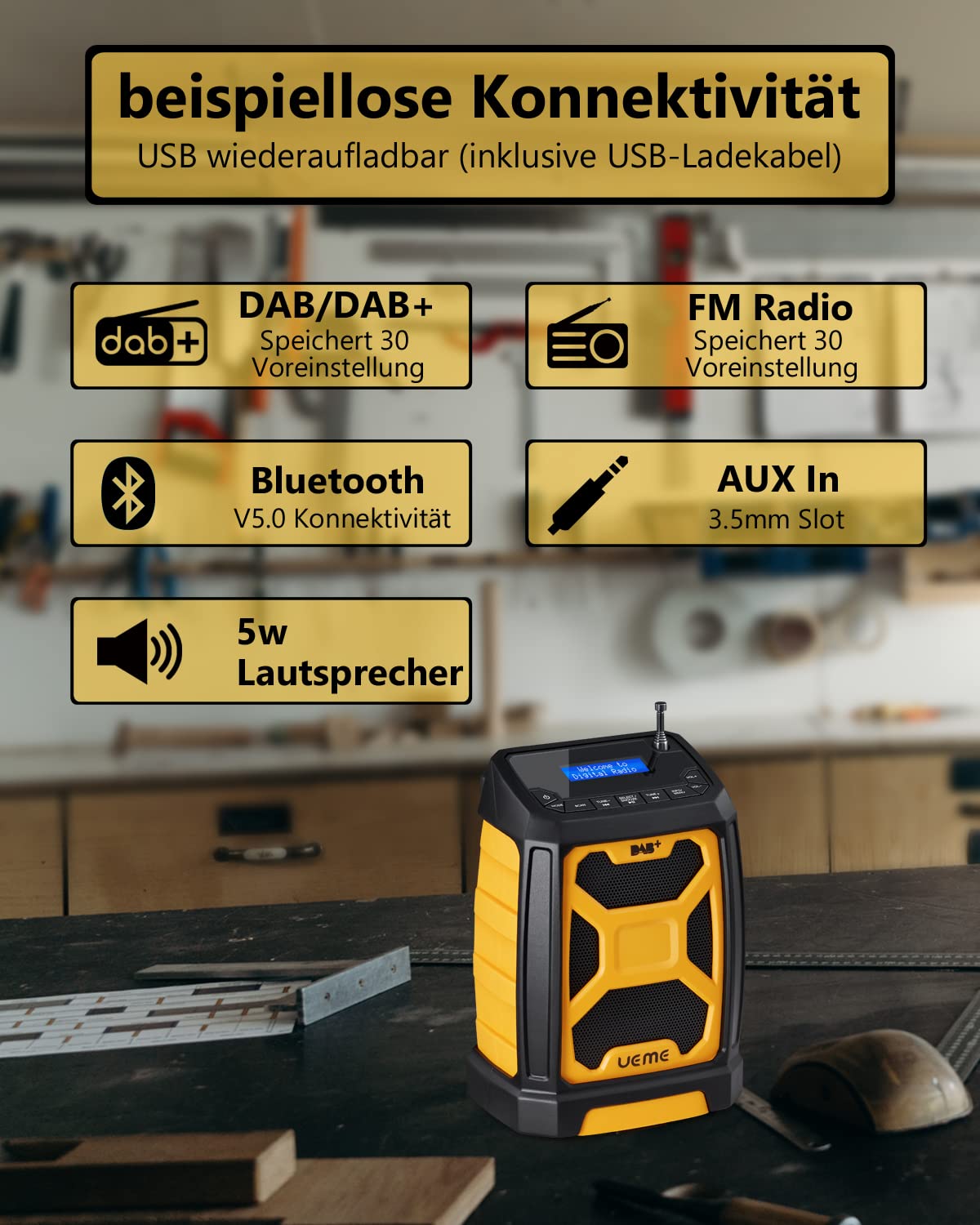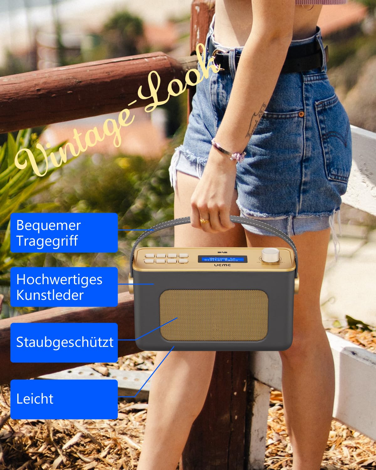 Retro DAB+ Radio Mit Bluetooth - Tragbar, Mit Akku & Weckerfunktion
