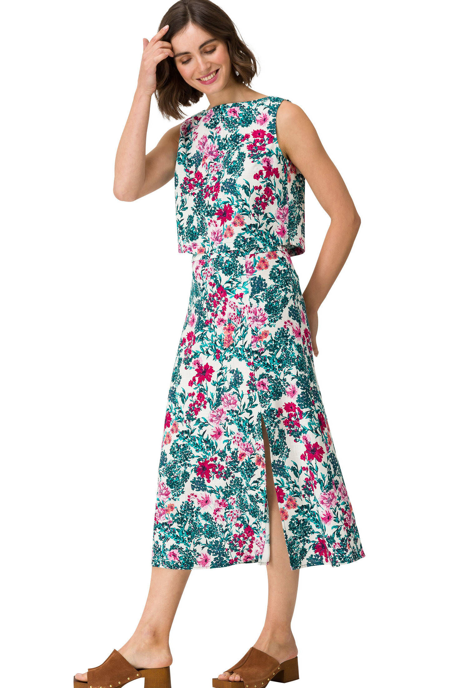 Damen Kurta Set Mit Blumendruck - Seidenmischung Mit Hose & Dupatta