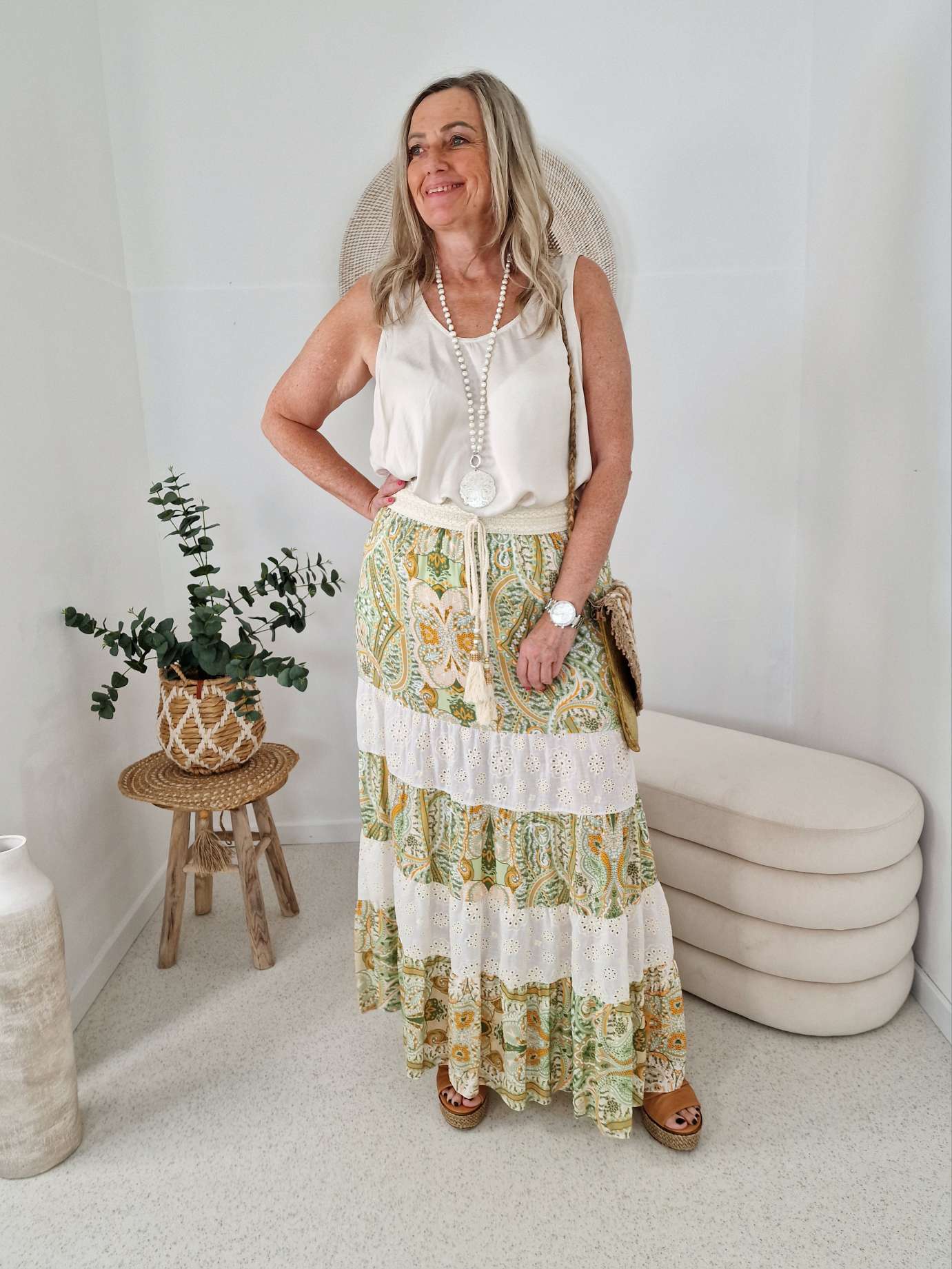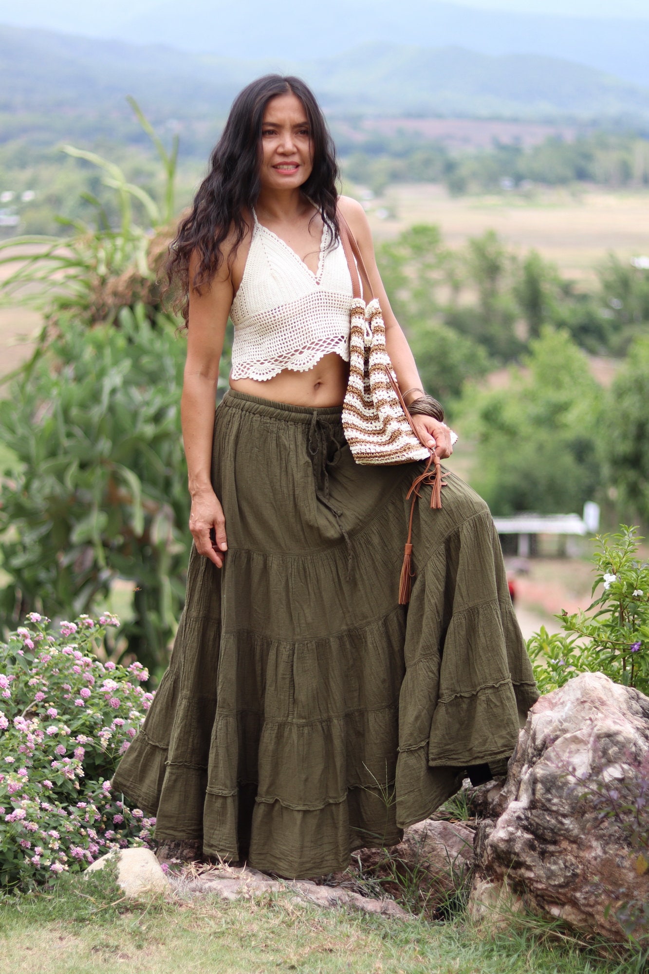 Boho-Chic pur! Dieser wunderschöne Maxirock mit romantischem Blumenmuster ist dein neuer Lieblingsbegleiter für den Herbst. Mit praktischem Gummibund der sich perfekt anpasst und super bequem sitzt. Aus weichem, dehnbarem Stoff der sich angenehm trägt und schmeichelhaft fällt. Perfekt für alle die es lässig und feminin mögen - ob mit Stiefeletten, Sandalen oder Sneakers. Ideal für den Alltag, Dates, Urlaub oder Festival-Besuche. Von Größe S bis XL erhältlich. Macht jede Frau zur Bohemian-Prinzessin! Einfach anziehen, drehen und sich in den schönsten Herbstfarben wohlfühlen. Perfekt kombinierbar mit engen Tops oder lockerem Strickpullover!