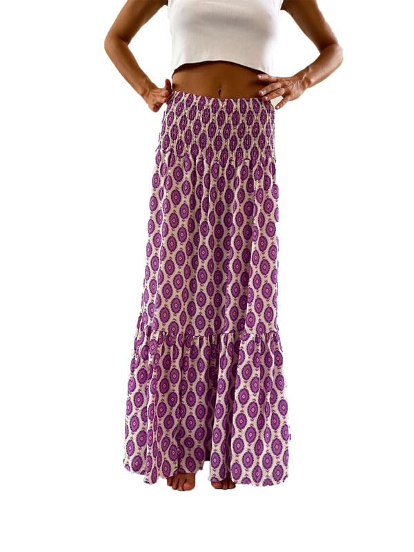 Damen Maxirock Lang Mit Blumenmuster - Boho Rock Mit Gummibund Für Herbst