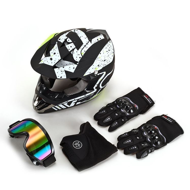 Kinder Motocross Helm Set | Mit Brille, Handschuhen & Maske | D.O.T. Zertifiziert Für Offroad & BMX