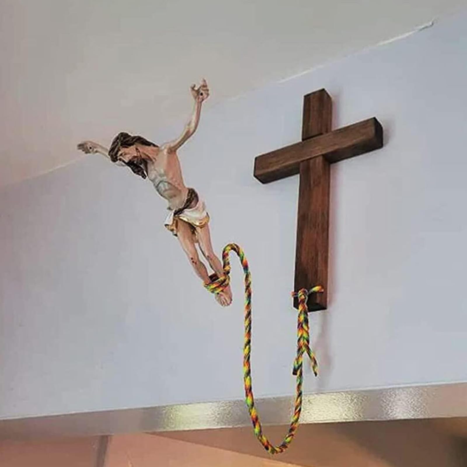 Diese Osterdekoration ist wirklich etwas Besonderes! Der Bungee Jumping Jesus bringt Humor und Glauben gekonnt zusammen. Perfekt für alle, die es etwas anders mögen. Die Figur eignet sich super als Wanddekoration für Wohnzimmer, Arbeitszimmer oder als Gesprächsstoff bei Osterfeiern. Aus hochwertigem Material gefertigt, ist sie langlebig und pflegeleicht - einfach mit einem feuchten Tuch abwischen. Die lebendigen Farben bleiben lange frisch und die Größe ist ideal für Tische, Fensterbänke oder als Eyecatcher an der Wand. Ob fürs Osterfest, als Geschenk für humorvolle Christen oder einfach als ungewöhnliche Deko - dieses Stück bringt definitiv Aufmerksamkeit! Einfach aufhängen und sich über die kreative Interpretation freuen. Sicher ein Highlight in deiner Osterdekoration!
