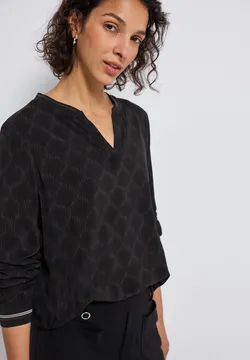 Street One Damen Bluse Mit Cut-Out Detail - Viskose Langarm Bluse