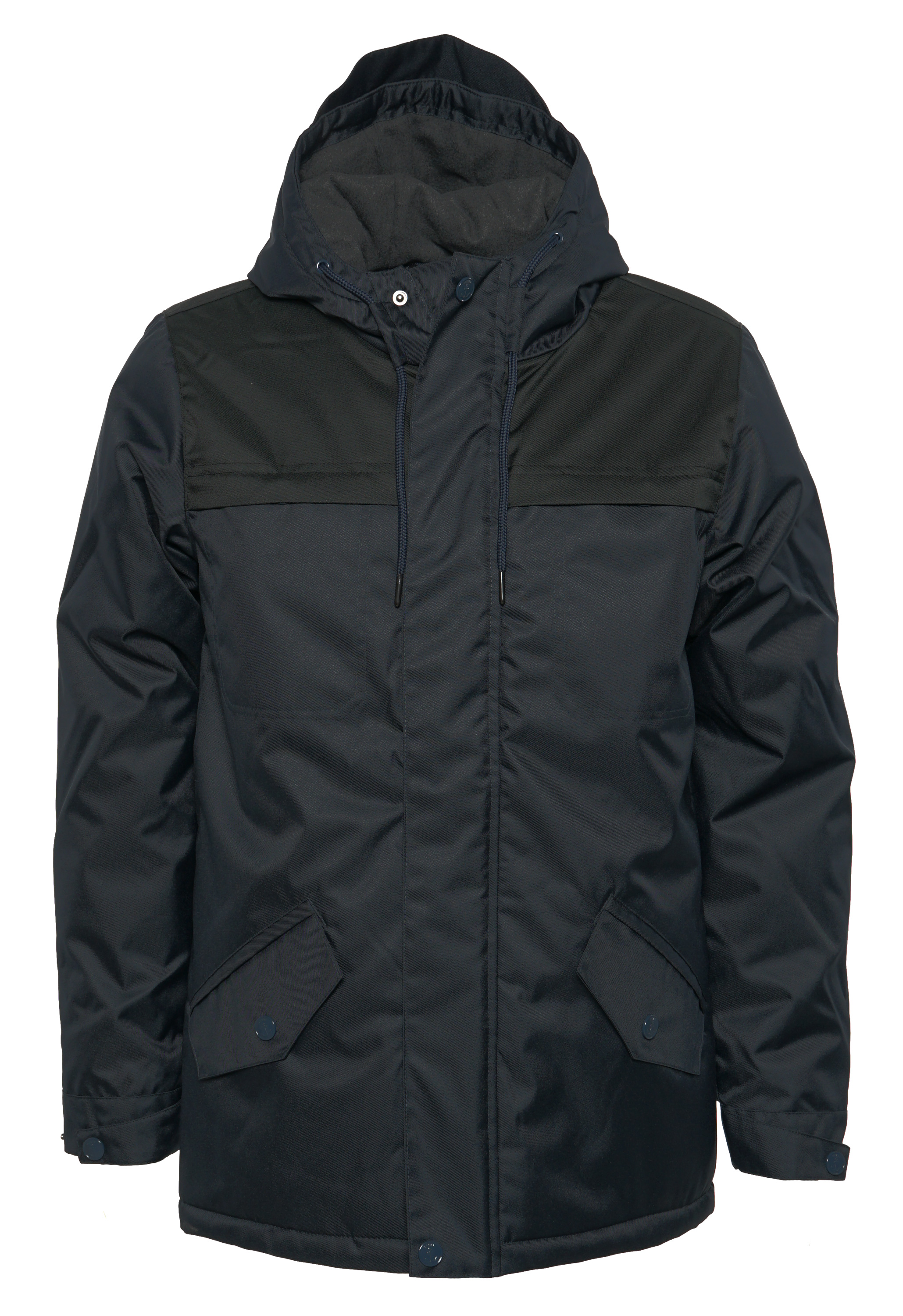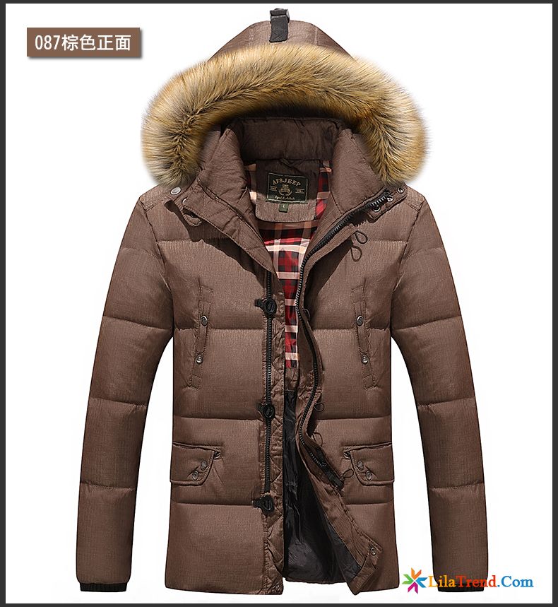 Winterjacke Herren Mit Denim Patchwork Ärmeln - Kapuzenmantel
