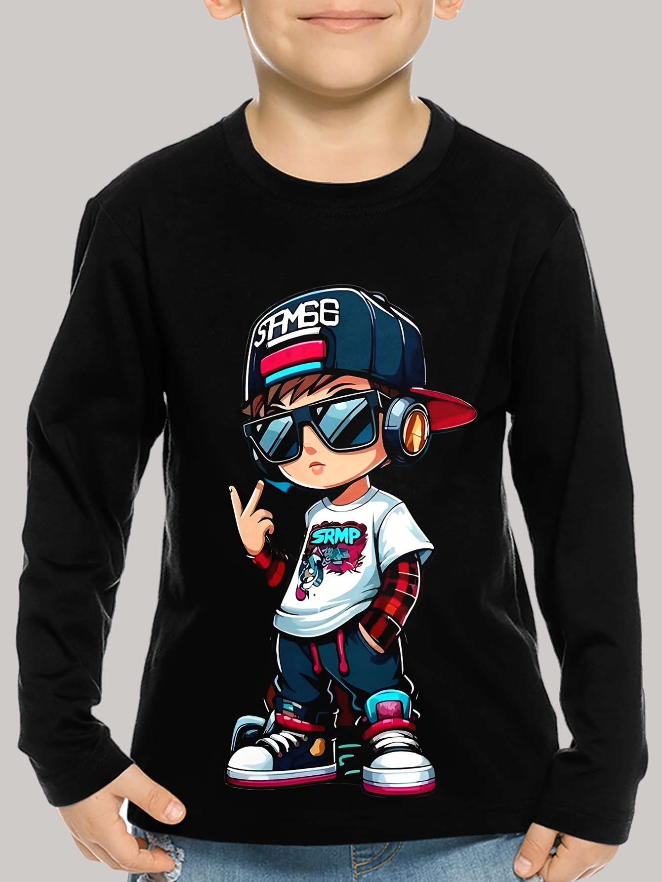 Kinder Langarmshirt Mit Dinosaurier Print - Baumwollshirt Für Jungen & Mädchen