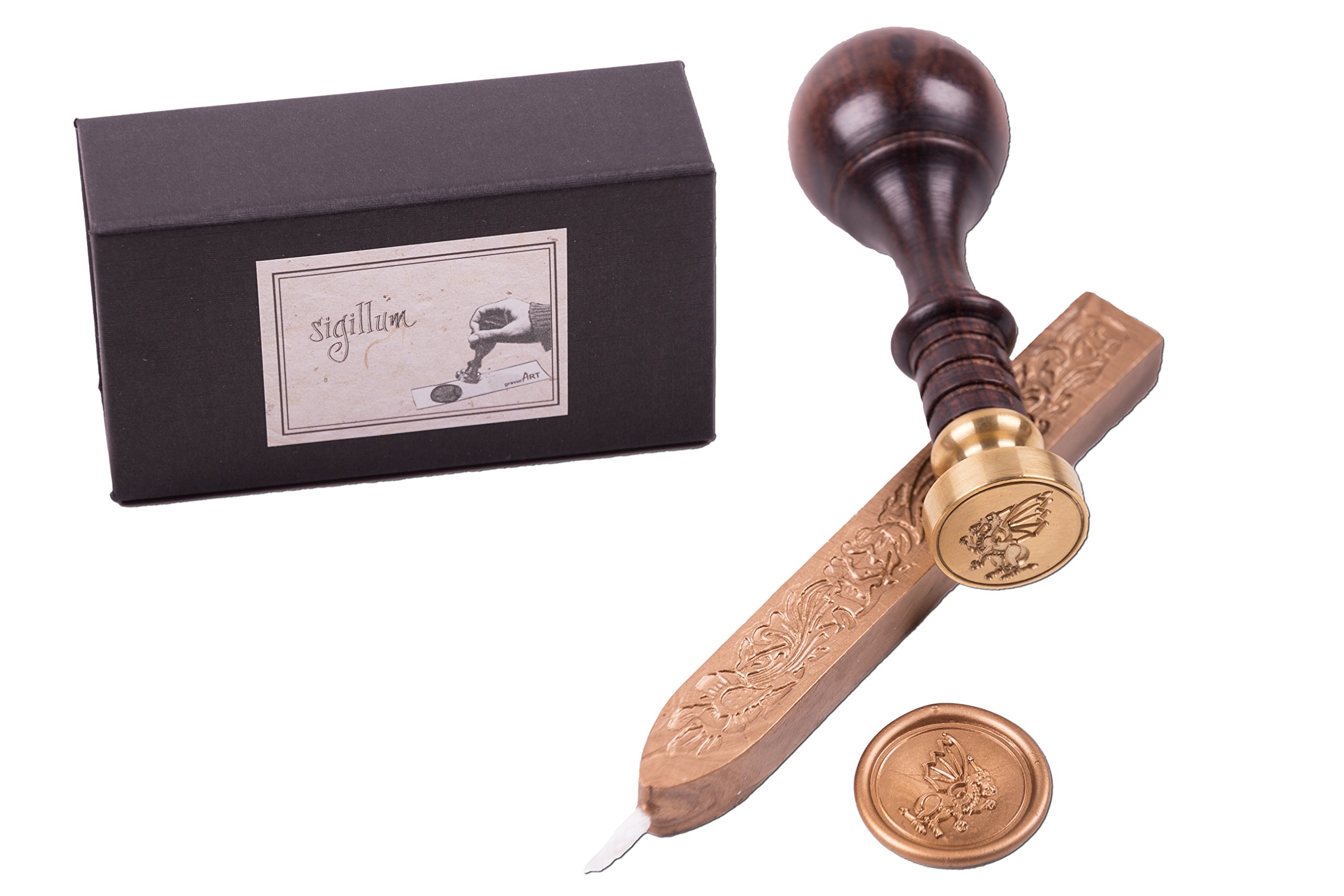 Siegelstempel Set Mit Drachen Gravur - Inklusive Wachs Im Geschenkkarton