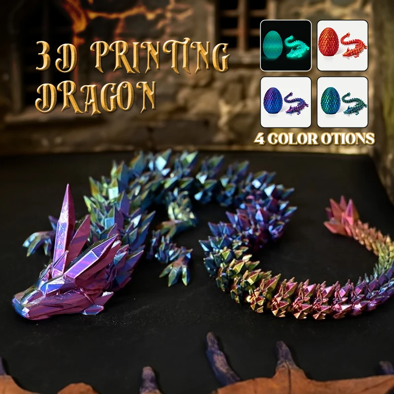 3D-gedruckter Drache Mit Drachenei - Bewegliches Fantasy-Spielzeug Aus Kristall-PLA
