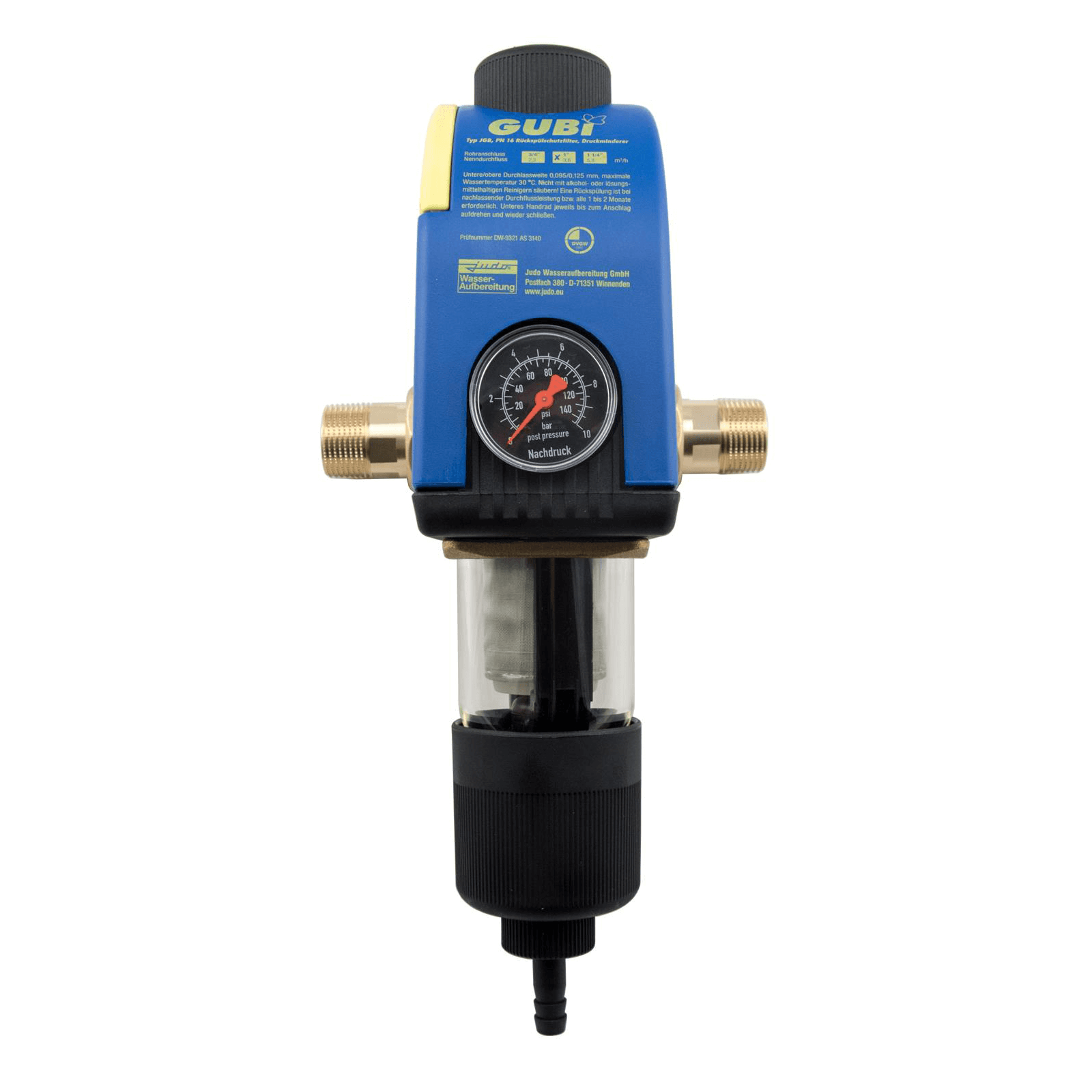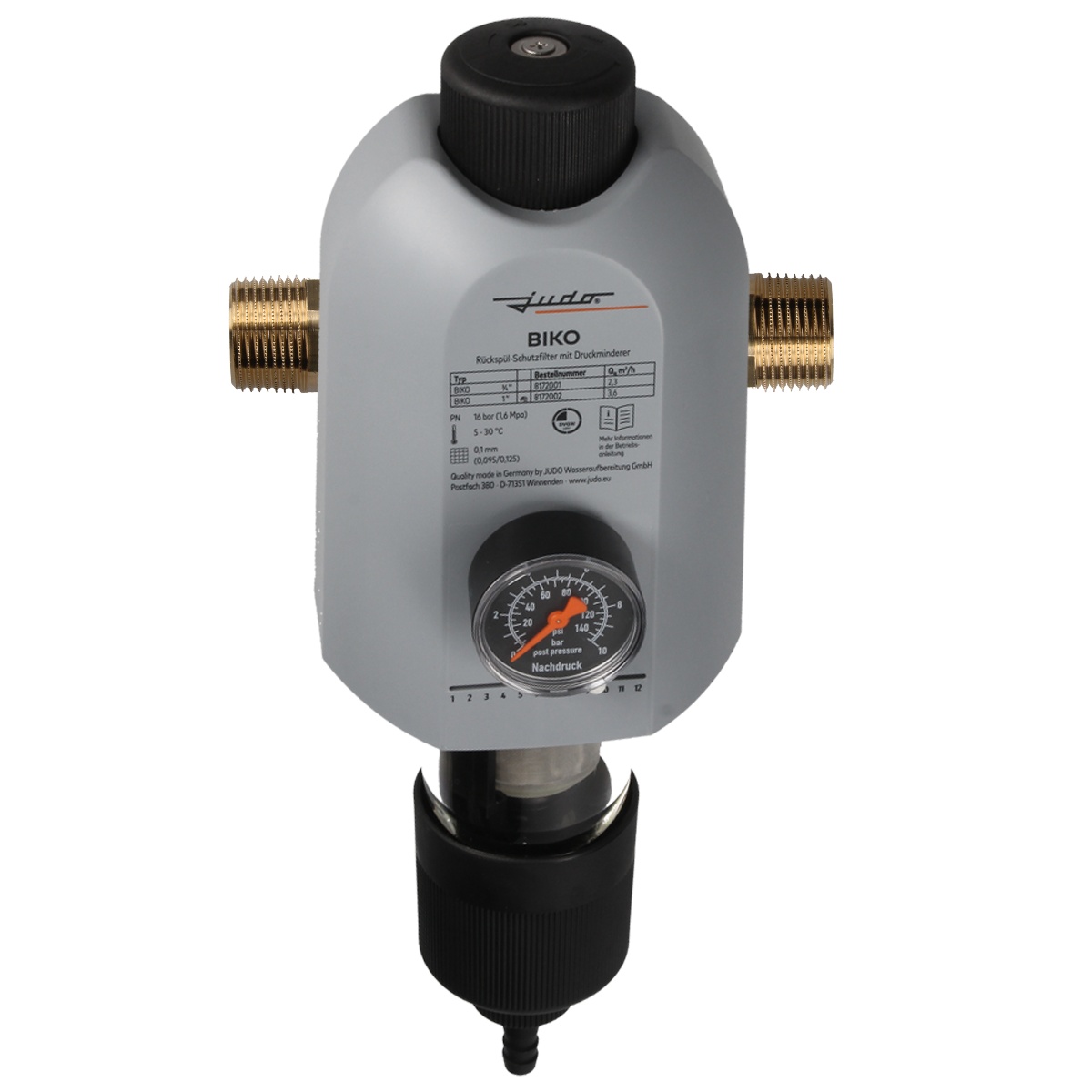Judo Biko Wasserfilter DN25 1' | Mit Druckminderer Und Manometer | Rückspülfilter