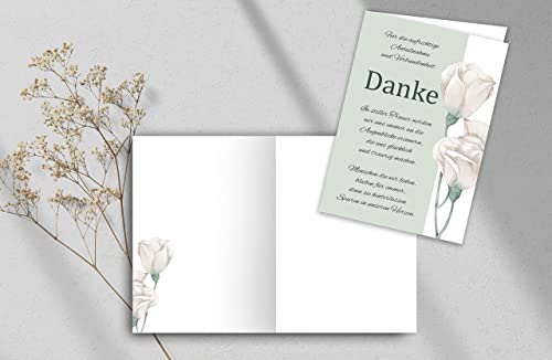 Wow, diese einfühlsamen Danksagungskarten sind echt was Besonderes! Stell dir vor: Du musst nach einem traurigen Verlust nicht lange überlegen, was du schreiben sollst - der Text ist schon für dich vorformuliert. Einfach nur noch den Namen ergänzen, vielleicht noch ein paar persönliche Worte, und schon hast du eine würdige Dankeskarte. Das Engelmotiv auf der Vorderseite ist einfach passend und die Karten fühlen sich richtig hochwertig an. A6-Format, 270g/m² starker Karton, außen Hochglanz und innen matt zum Beschreiben. Und klar, die passenden beigen Umschläge liegen gleich mit dabei. Perfekt, um sich bei Freunden und Familie für Beileidsbekundungen zu bedanken - ohne Stress und trotzdem persönlich. Hergestellt in Deutschland, wo Qualität noch groß geschrieben wird! Die Karten kommen im 10er-Set, also hast du gleich genug für alle, die dir in dieser schweren Zeit zur Seite stehen.