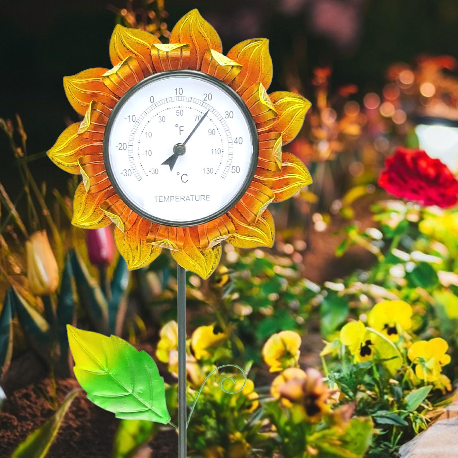Sonnenblumen Thermometer Mit Erdspieß - Dekoratives Gartenthermometer