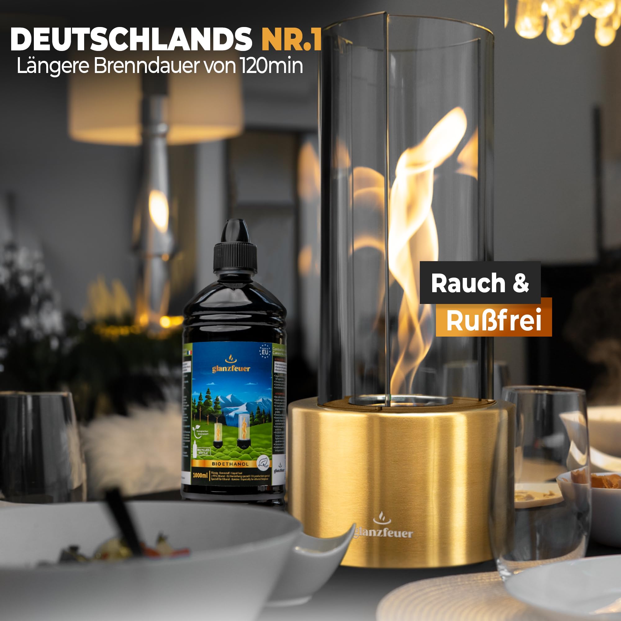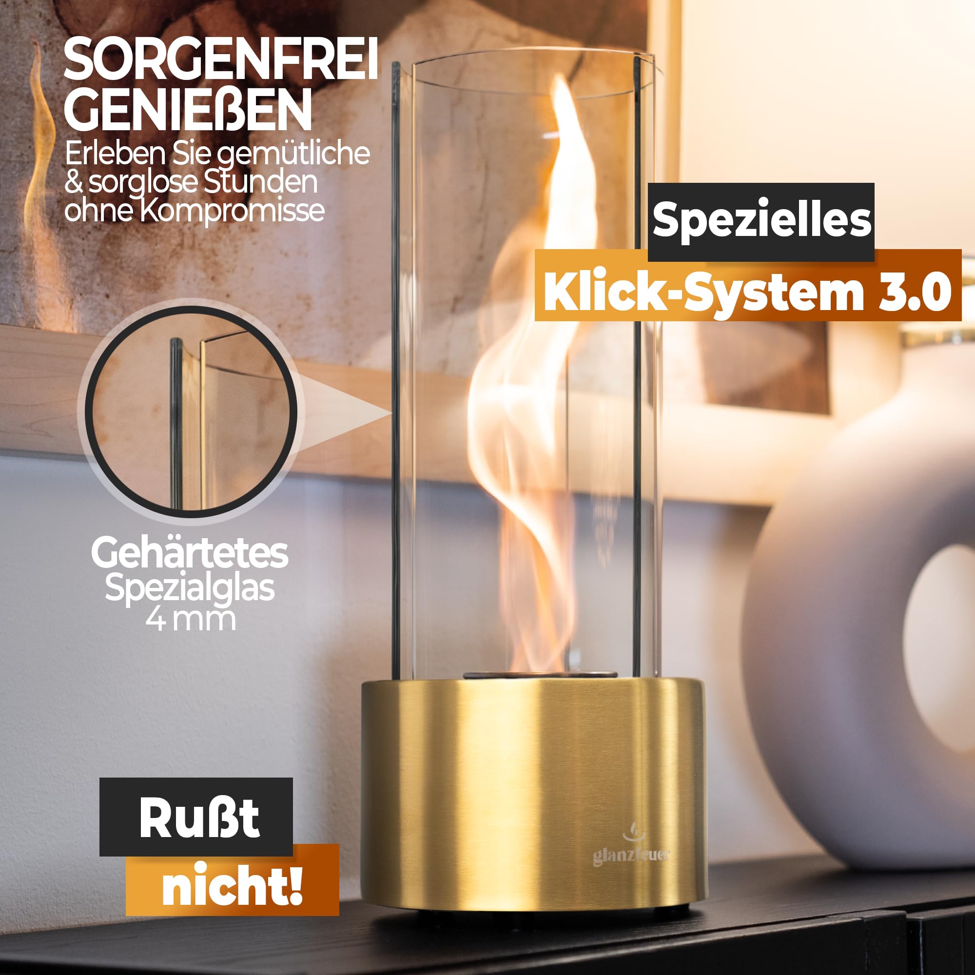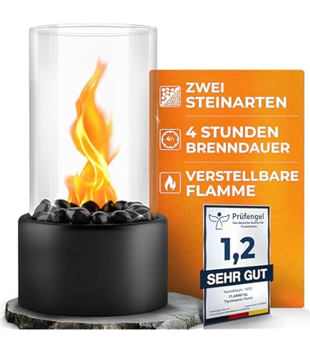 Tischkamin Outdoor Mit Ethanol | Flammenregler & Glasplatten | Für Balkon & Terrasse