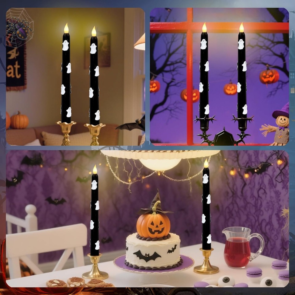 Ghost LED Kerzen Mit Fernbedienung - Flammenlose Spitzkerzen Für Halloween Deko