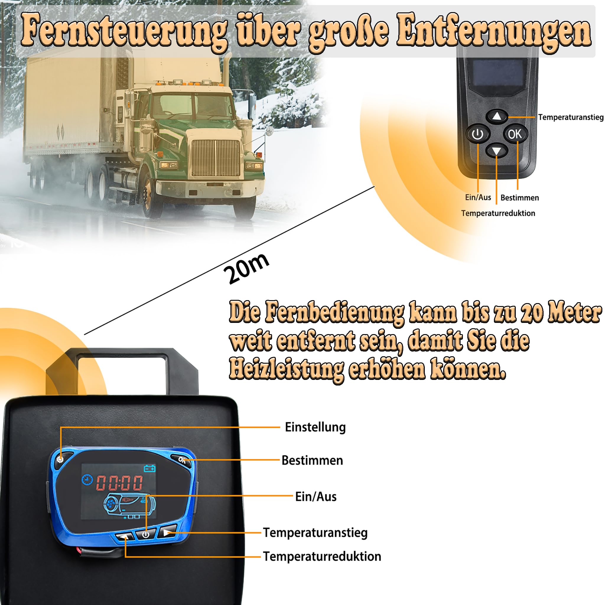 Brrr, kalte Wintermorgen? Vergiss sie mit dieser Diesel-Standheizung! Die 8KW Power heizt dir dein Auto, Wohnmobil oder Boot richtig schnell auf. Einfach aus der Ferne mit der praktischen Fernbedienung starten (bis zu 20 Meter Reichweite) und wenn du einsteigst, ist es schon kuschelig warm. Verbraucht nur 0,18-0,48 Liter Diesel pro Stunde - viel sparsamer als den Motor laufen zu lassen. Besonders clever: Der LCD-Monitor zeigt dir immer an, was die Heizung macht. Mit Schalldämpfer bleibt sie leise, und das komplette Installations-Zubehör liegt dabei. Egal ob -40°C oder +50°C - diese Heizung macht keinen Rückzieher. Perfekt für Camper, Handwerker und alle, die morgens nicht frieren wollen!