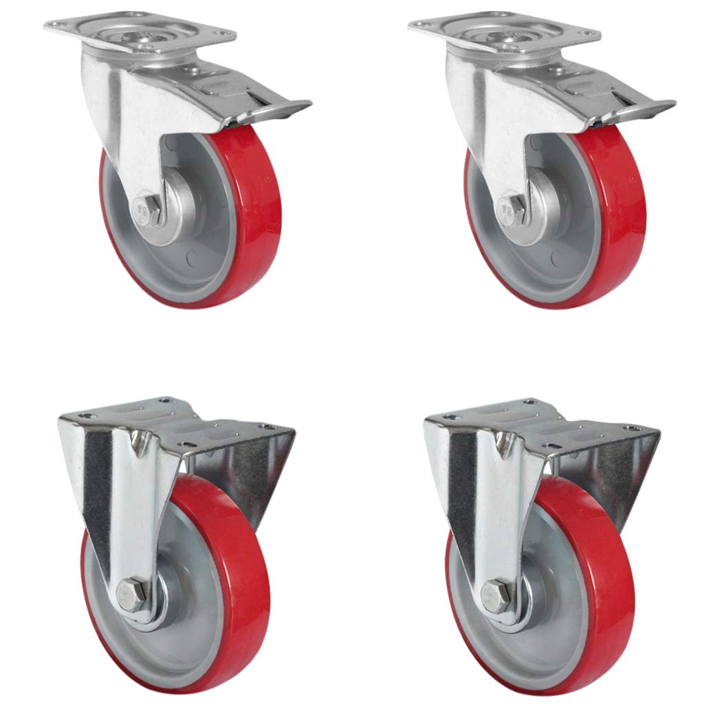 CASCOO Rollensatz 4er Pack - Lenkrollen Mit Feststeller, 125mm Durchmesser, Traglast 600kg