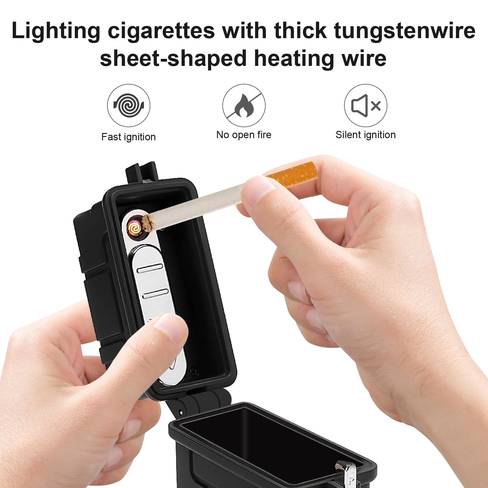 Hey Raucher! 🚬 Dieses stylische Zigarettenetui in 2er-Pack ist dein perfekter Begleiter für unterwegs. Aus robustem Weltraumaluminium gebaut schützt es deine Zigaretten vor Beschädigung und Feuchtigkeit.\n\nDas integrierte elektronische Feuerzeug ist der absolute Clou! Nie wieder ohne Feuerzeug dastehen - alles ist in einer Box vereint. Super praktisch für unterwegs, auf Reisen oder beim Ausgehen.\n\nTechnische Details:\n- Material: Weltraumaluminium + Technischer Kunststoff\n- Kapazität: 20 Zigaretten (volle Schachtel)\n- Maße: 60x92x27mm (ohne Feuerzeug)\n- Farbe: Schwarz\n- Lieferumfang: 2 Stück\n\nFeatures die überzeugen:\n- Integriertes USB-Feuerzeug\n- Wasserdichtes Design\n- Robuste Aluminium-Konstruktion\n- Elegantes schwarzes Finish\n- Kompakte Maße\n\nDas Feuerzeug wird einfach per USB-Kabel aufgeladen. Kein lästiges Nachfüllen mit Gas mehr! Einfach anschließen, aufladen und du bist wieder startklar.\n\nDie wasserdichte Ausführung ist perfekt für:\n- Regentage\n- Schnee und Kälte\n- Strand und Pool\n- Outdoor-Aktivitäten\n- Camping und Wandern\n\nDie Box schützt deine Zigaretten nicht nur vor Nässe, sondern auch vor Knicken und Bruch. So kommst du immer an deine Zigaretten in einwandfreiem Zustand.\n\nPerfekt für:\n- Täglichen Gebrauch\n- Reisen und Urlaub\n- Arbeit und Freizeit\n- Geschenk für Raucher\n- Outdoor-Abenteuer\n\nDas schicke Design in Schwarz sieht dabei noch richtig edel aus. Kein billiges Plastik-Etui sondern ein hochwertiges Accessoire das sich sehen lassen kann.\n\nMit der Kapazität für 20 Zigaretten bist du für den ganzen Tag oder ein Wochenende bestens ausgestattet. Und falls du mal ein Etui verlierst - du hast ja direkt ein Ersatz dabei!\n\nEinfach Zigaretten einlegen, Feuerzeug aufladen und nie wieder ohne Feuerzeug dastehen. Praktischer geht's kaum!