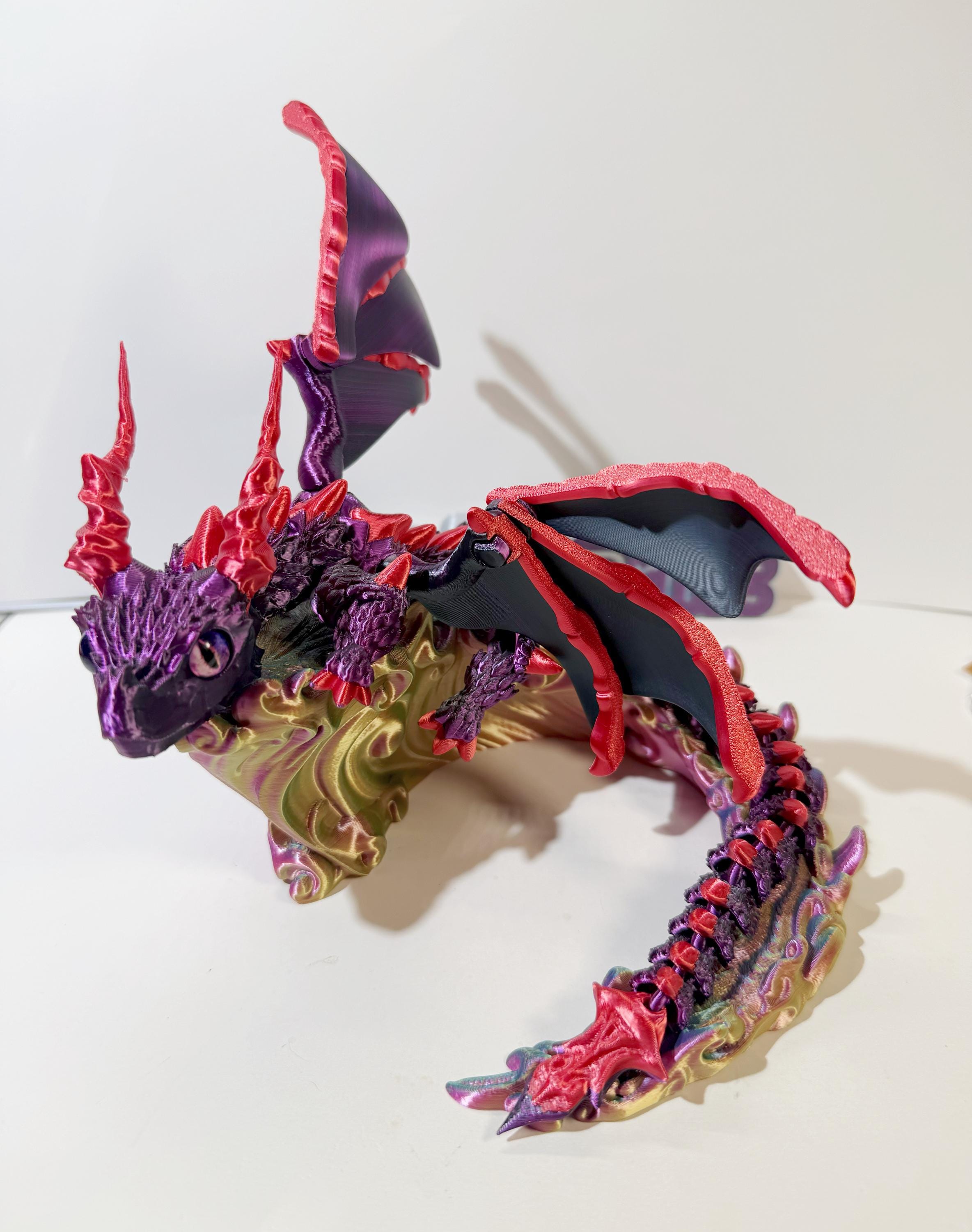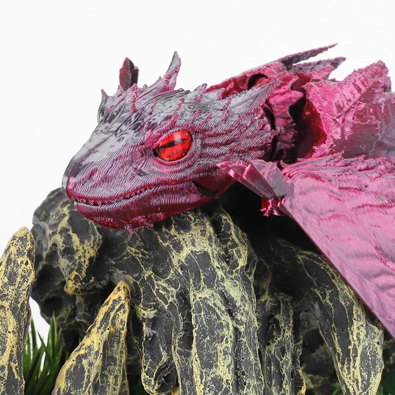 3D-gedruckter Beweglicher Drache Mit Flügeln - Gefiederter Wyvern Mit Bonus Mini