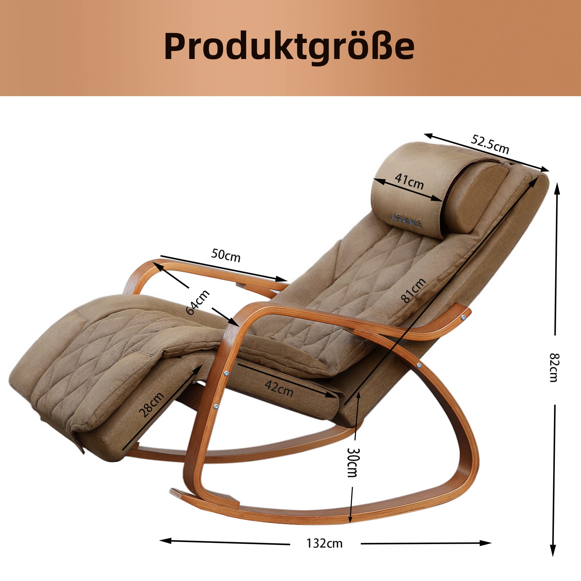 Massiver Holzrahmen trägt bis zu 150kg und garantiert jahrelange Stabilität. Die Wippfunktion sorgt für zusätzliche Entspannung, während das ergonomische Design mit Lendenstütze deinen Rücken entlastet.
