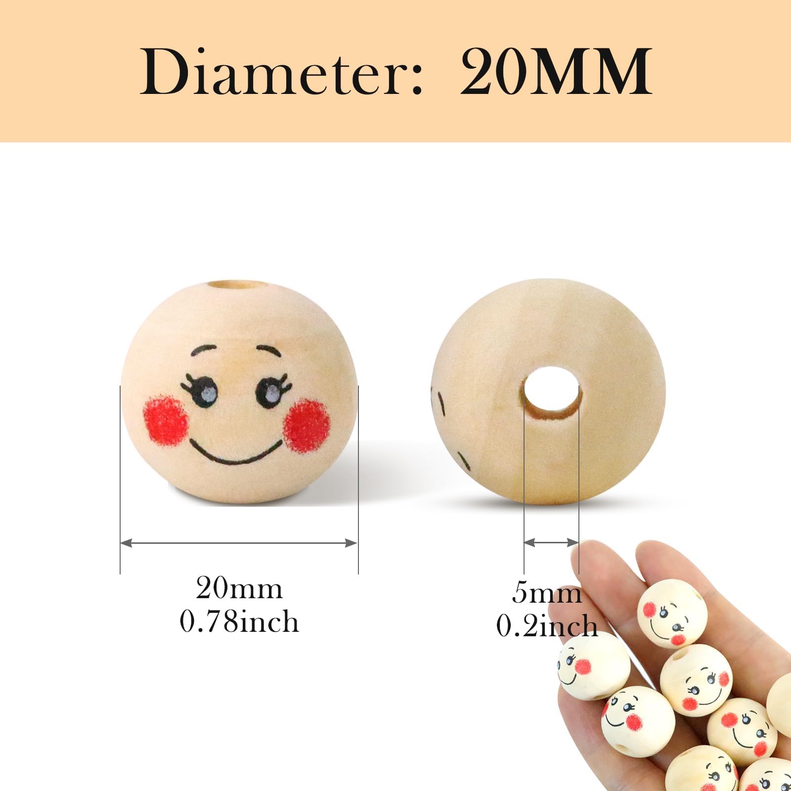 HJIAMA Holzkugeln Mit Gesicht 80 Stück - 20mm Holzperlen Mit Babygesicht Für DIY Schmuck
