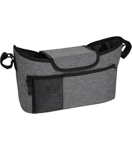 Endlich Ordnung im Kinderwagen! Dieser praktische Organizer von Petyoung hat alles, was du unterwegs brauchst. Mit 31x12x14cm bietet er genug Platz für Flaschen, Windeln und deine eigenen Sachen. Aus robustem Polyester, der auch bei täglichem Gebrauch hält. Besonders praktisch: Die abnehmbare Handtasche mit Reißverschluss für Wichtiges wie Handy oder Geldbeutel. Mit Schultergurt kannst du sie auch separat tragen. Die zwei Getränkehalter halten Flaschen sicher fest. Passt an die meisten Kinderwagen-Modelle - einfach befestigen und schon hast du alles griffbereit. Schwarz, unauffällig und super funktional!