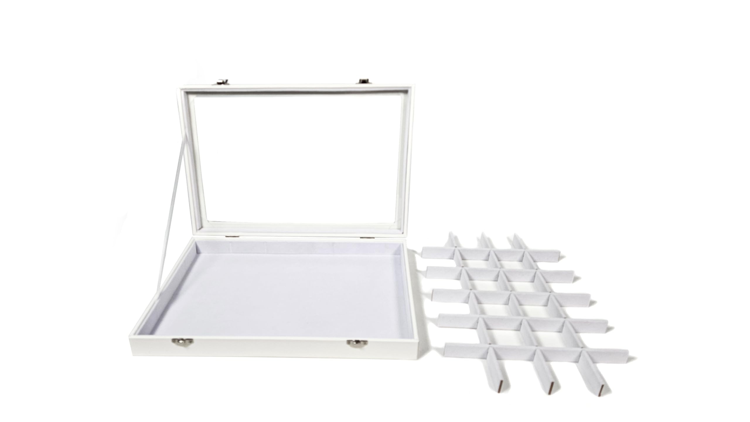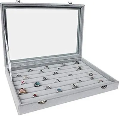 Schmuckkasten Mit Glasdeckel - 45 Fächer Weiß Samtausstattung