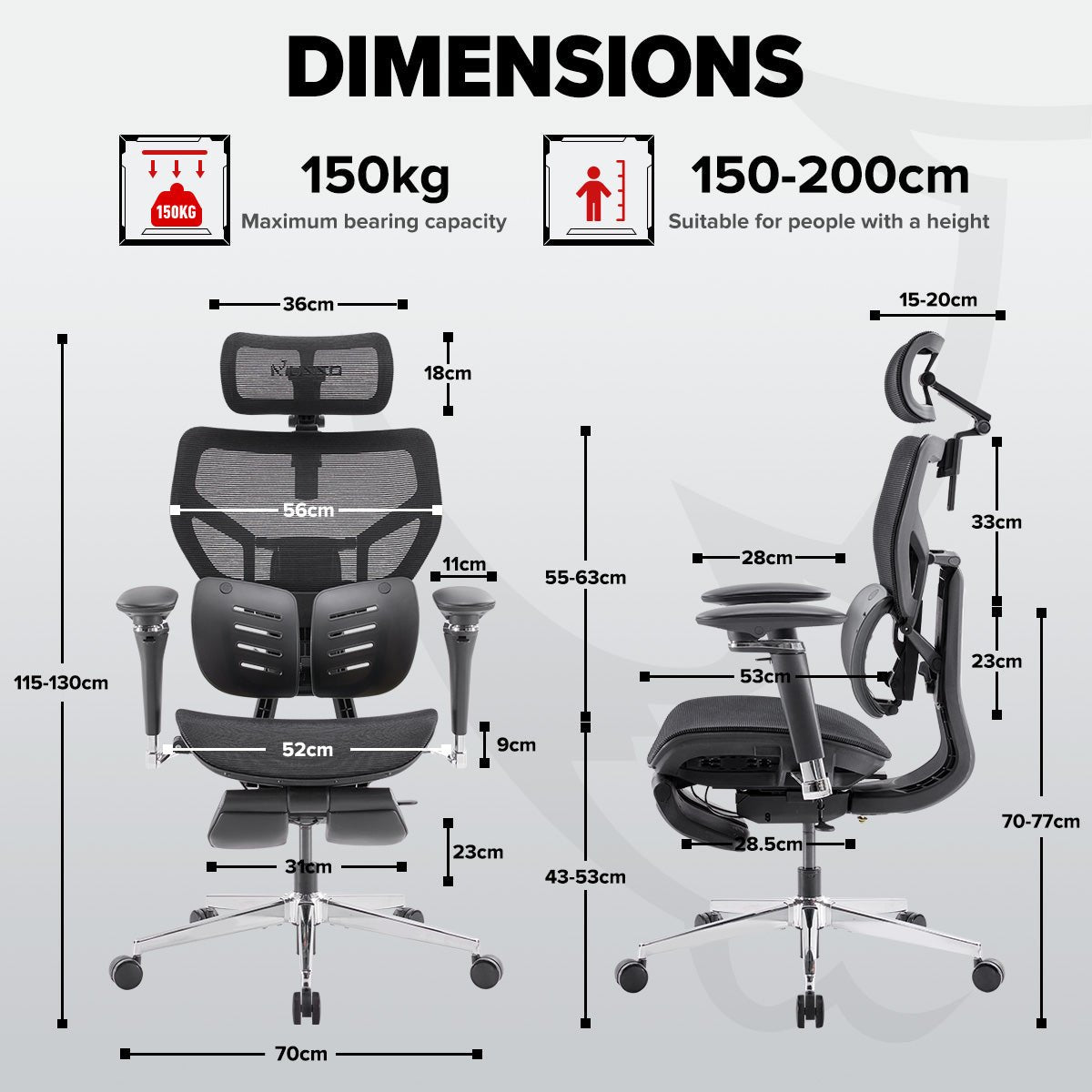 MUSSO X700 Ergonomischer Bürostuhl - Mit GlideTrack-Lendenstütze, 6D-Armlehnen & Fußstütze