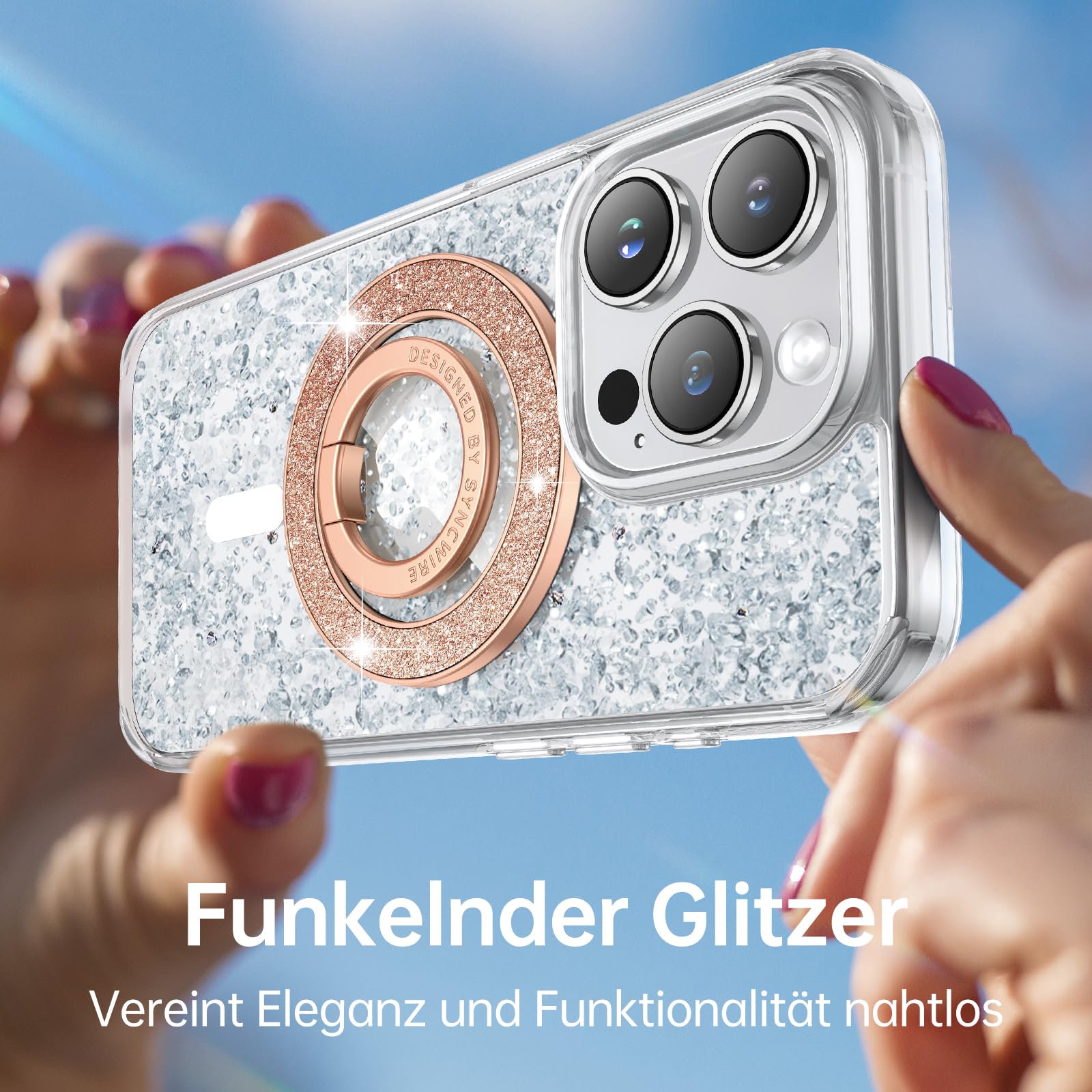 Glitzer und Funktion in einem! Diese Handyhalterung macht dein Smartphone zum echten Hingucker. Die funkelnde Acryl-Oberfläche sorgt für stylisches Aussehen, während der starke Magnet zuverlässigen Halt garantiert. Der ausziehbare Griff gibt sicheren Halt bei Selfies, Videos oder Gaming-Sessions. Durch die 360° Drehfunktion findest du immer den perfekten Winkel - ob Hochformat für Stories oder Querformat für Filme. Einfach den Magnetring auf dein Handy oder Case kleben und schon haftet die Halterung sicher. Kompakt und vielseitig für unterwegs, im Auto oder auf dem Schreibisch. Praktisch, schön und superfunktional - mehr braucht's nicht für perfekte Handy-Nutzung!