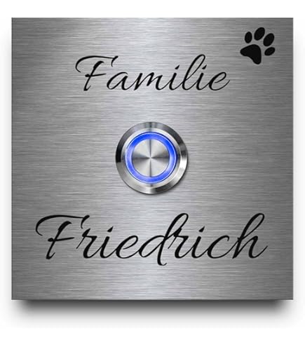 Wow, so macht die Haustür richtig was her! Diese Edelstahl-Klingel von CHRISCK Design kannst du komplett nach deinem Geschmack gestalten. Einfach unter 'Jetzt anpassen' dein Wunsch-Design aussuchen und Text eingeben - wir gravieren es dann perfekt ein. Die 12x18 cm große Platte aus 2mm starkem Edelstahl ist total witterungsbeständig. Optional mit LED-Beleuchtung in verschiedenen Farben oder cooler Acryl-Dekorplatte. Montage ist easy - wähl einfach zwischen Silikon, Spannfeder oder Wandhalterung. Passt an die meisten Klingelanlagen (6-24V). Mach deine Haustür zum echten Hingucker!