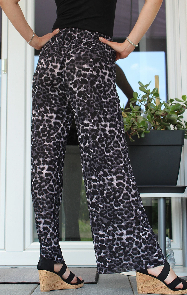 Leopardenprint goes Comfort! Diese weite SweatyRocks Hose kombiniert Style mit ultimativem Tragekomfort - perfekt für entspannte Tage. \\n\\nGRÖSSENAUSWAHL: \\n• 0XL: Taille 82-118cm, Hüfte 124cm \\n• 1XL: Taille 88-124cm, Hüfte 130cm \\n• 2XL: Taille 94-130cm, Hüfte 136cm \\n• 3XL: Taille 100-136cm, Hüfte 142cm \\n• 4XL: Taille 106-142cm, Hüfte 148cm \\n\\nDETAILS: \\n• Länge: ca. 104cm \\n• Innennaht: 72cm \\n• Elastischer Bund mit Kordelzug \\n• Weite Beine für maximalen Komfort \\n• Leichtes, weiches Material \\n\\nSTIL & DESIGN: \\n• Trendiger Leopardenprint \\n• Gerade Passform \\n• Elegante Erscheinung \\n• Vielseitig kombinierbar \\n\\nEINSATZBEREICHE: \\n• Entspannte Freizeit \\n• Urlaub und Reisen \\n• Einkaufen und Spaziergänge \\n• Gemütliche Abende \\n• Büro (je nach Dresscode) \\n\\nMATERIAL: \\n• Weich und hautsympathisch \\n• Leicht und atmungsaktiv \\n• Pflegeleicht \\n• Langlebig \\n\\nTIPP: Perfekt für alle, die es bequem mögen ohne auf Style zu verzichten!