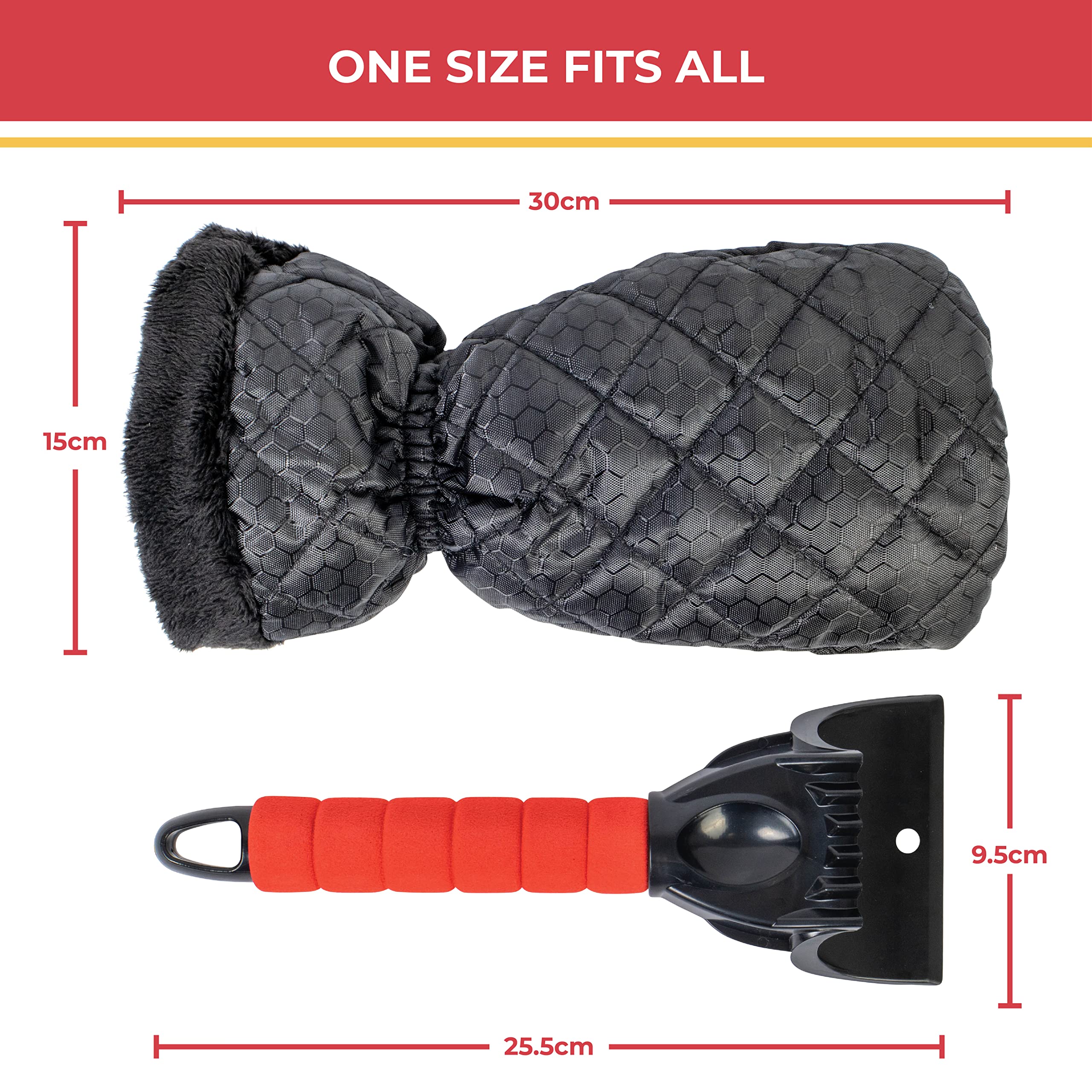 Winter-Alarm! Dieses GADLANE 2er-Set mit Eiskratzer und Handschuh ist dein Retter in der Not. 2in1 Design - der praktische Fleece-Handschuh hält deine Hände warm und trocken während du kratzt. Mit elastischem Armband, rutscht nicht ab. Die extra scharfen Klingen entfernen selbst dickstes Eis ohne dein Auto zu zerkratzen. Leicht und effektiv - kein Herumfummeln mehr mit kalten Fingern! Passt für alle Handgrößen, für Männer und Frauen. Einfach anziehen und loskratzen - deine Windschutzscheibe ist in Nullkommanichts eisfrei. Perfekt für die kalte Jahreszeit - damit startest du sicher und warm in den Tag!