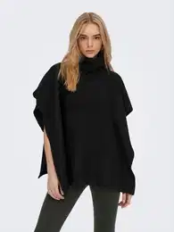 Gemütlichkeit pur! Dieser JFAN Strick-Poncho ist dein neuer Lieblingsbegleiter für die kalte Jahreszeit. Mit 77cm Länge und einem hohen Kragen hält er dich wunderbar warm, ohne einzuengen.