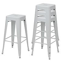 4 Barhocker Weiß Mit Holz-Sitz - Stapelbare Tresenhocker 76cm