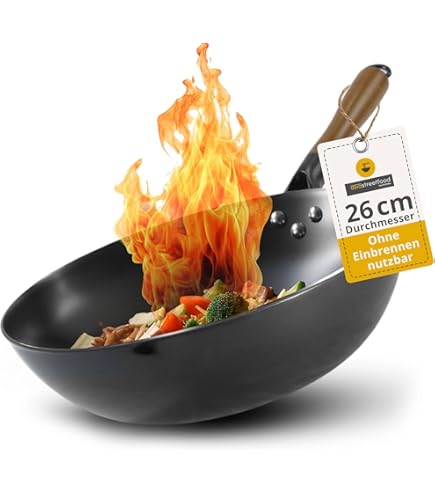 Diese handgeschmiedete Wokpfanne ist ein echter Küchen-Allrounder! Aus purem Gusseisen gefertigt und komplett unbeschichtet, ist sie nicht nur super gesund (keine schädlichen Chemikalien!), sondern gibt beim Kochen sogar natürliches Eisen an dein Essen ab. Der flache Boden macht sie perfekt für Induktion, Elektro- und Gasherde. Mit dem rustikalen Holzgriff und dem praktischen Holzdeckel sieht sie nicht nur toll aus, sondern liegt auch gut in der Hand. Die handgeschlagene Oberfläche sorgt für einen natürlichen Anti-Haft-Effekt - je öfter du sie benutzt, desto besser wird sie! Ideal für Braten, Dünsten, Schmoren oder einfach nur Pfannenrühren. Der 24cm Durchmesser ist ideal für 2-4 Personen. Inklusive Holzschaufel für authentisches Wok-Feeling. Ein Küchenbegleiter fürs Leben!